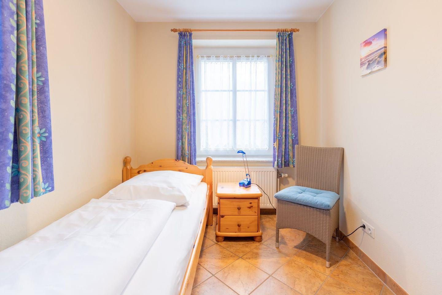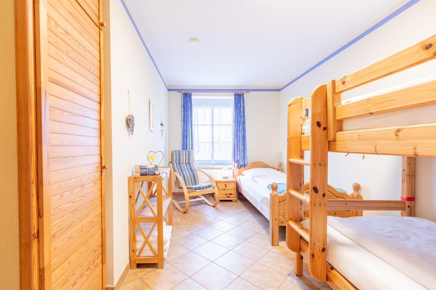Die Ferienwohnung liegt im Erdgeschoss des Apartmenthauses "Maashof" und eignet sich besonders für Familien.