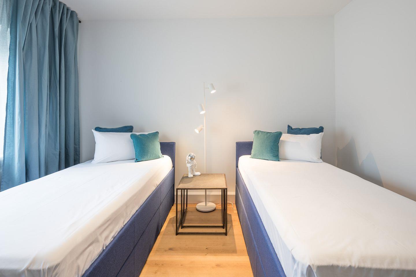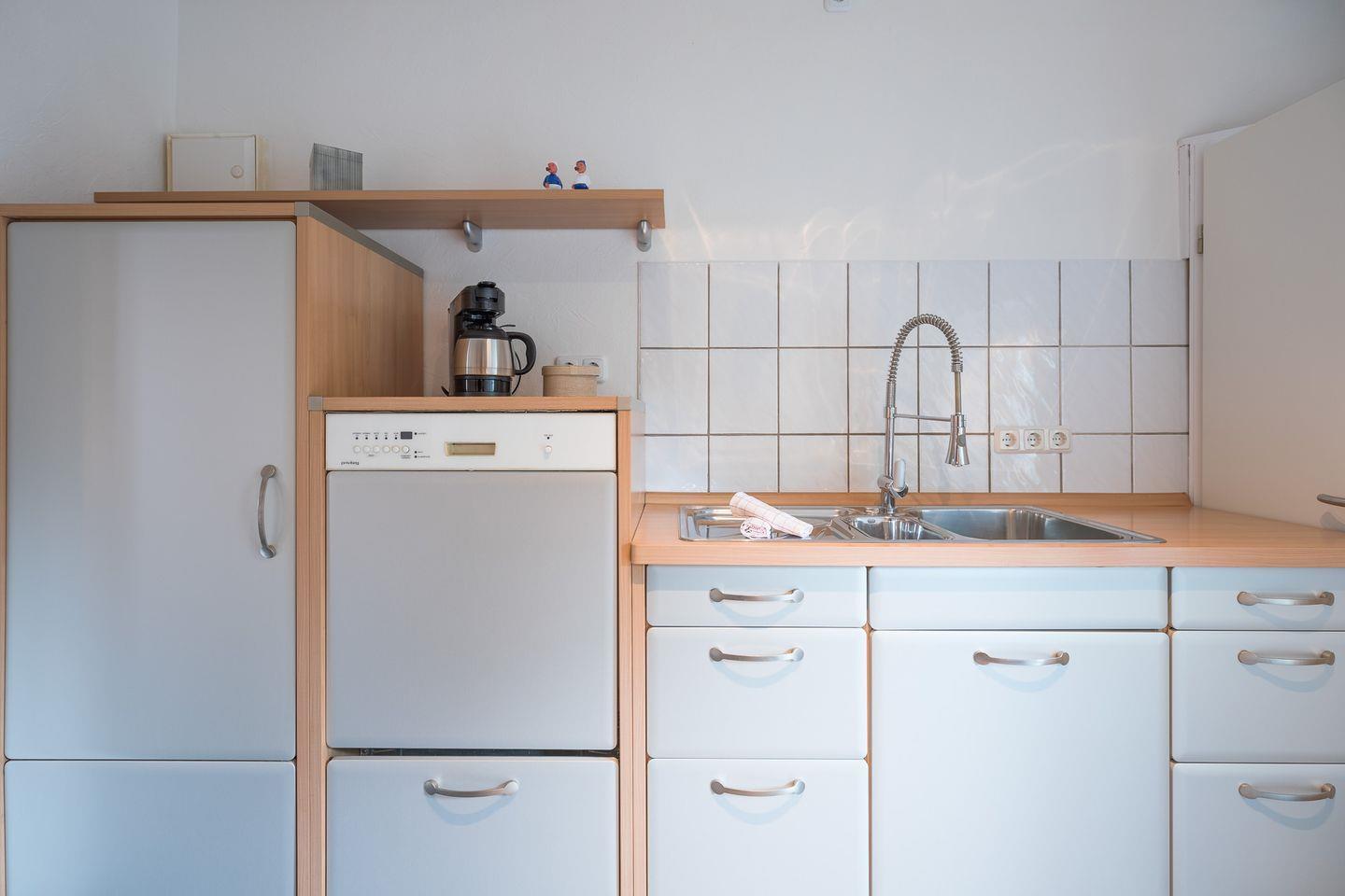 Die Ferienwohnung ist hochwertig eingerichtet: ein Schlafzimmer mit einem bequemen Doppelboxspringbett (180 x 200), das zweite mit zwei Einzelbetten. Die Küche ist mit einem Ceranfeld, Geschirrspüler, Kühlschrank mit Gefrierfach, Toaster, Kaffeemaschine (Filtergröße 4), Qbo Essential und einem Wasserkocher ausgestattet. Im Wohnbereich mit einer Sitzgarnitur, einer Essecke und einem Flachbild-TV können Sie den Tag gemütlich ausklingen lassen.