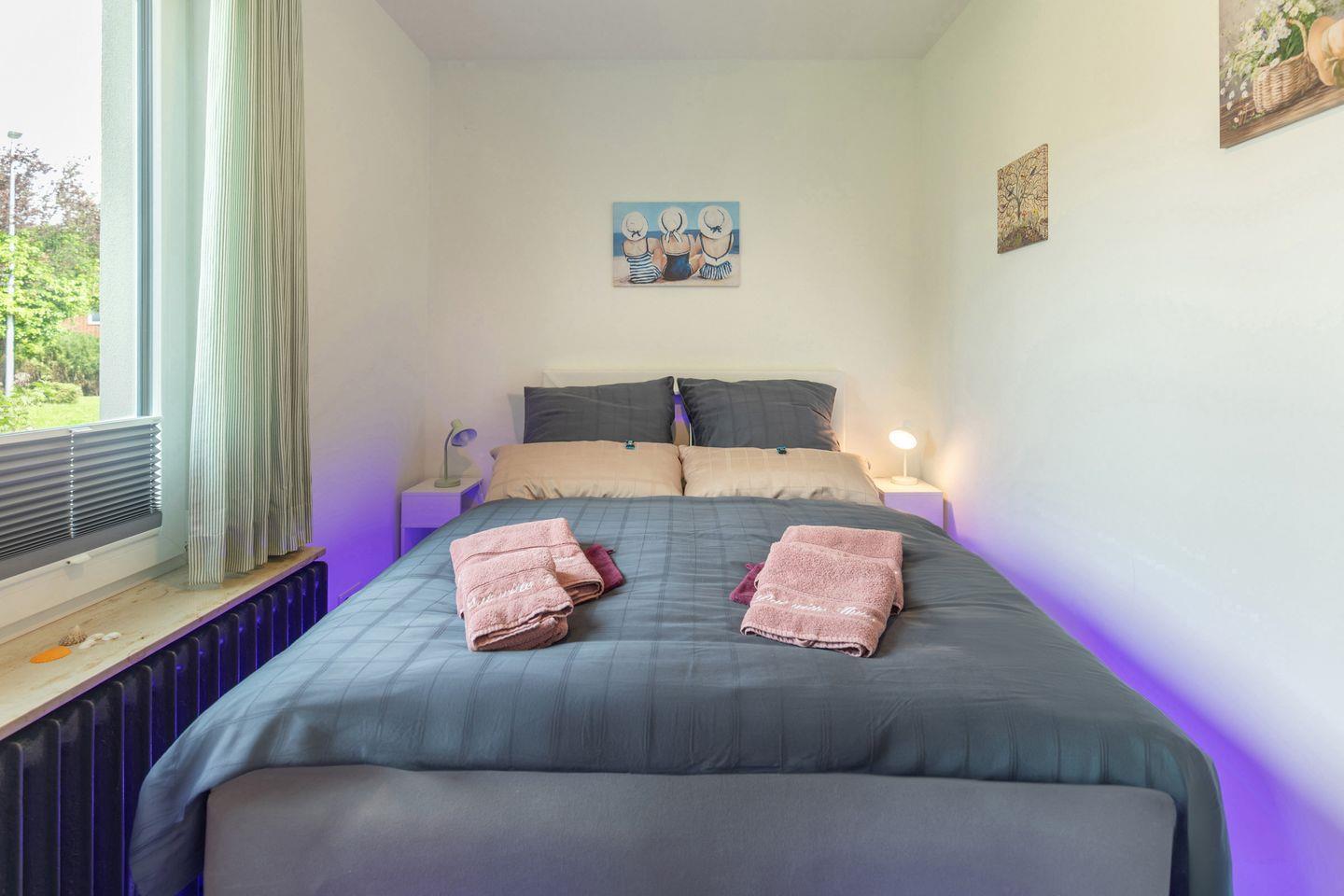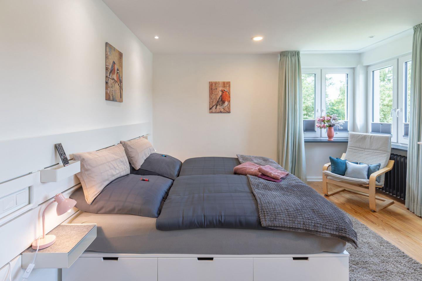 Das nächste Schlafzimmer befindet sich im zweiten Stock und verfügt ebenfalls über ein kleines Doppelbett (140x200). Das fünfte Schlafzimmer befindet sich im Dachgeschoss und ist mit einem Bett der Größe 160x200 cm ausgestattet. Alle Fenster in den Schlafzimmern können mit Plissees verdunkelt werden.