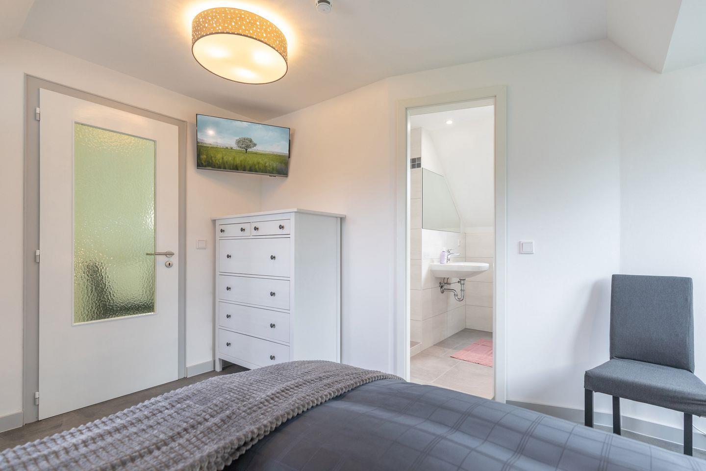 Das erste der fünf Schlafzimmer im Erdgeschoss verfügt über ein kleines Doppelbett (140×200). Die Schlafzimmer im ersten und Stock sind mit jeweils einem großen Doppelbett (180×200) ausgestattet.