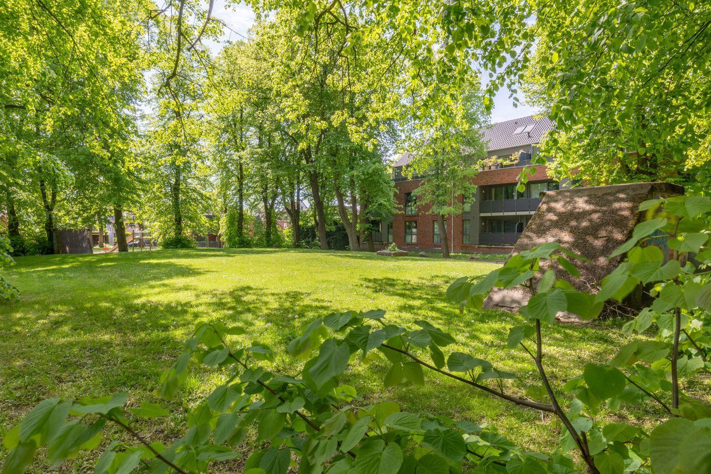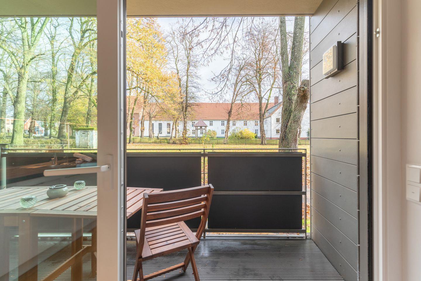 Moderne Ferienwohnung "Theos Garten" in Husum mit Balkon und Blick auf Theodor Storms Grab.