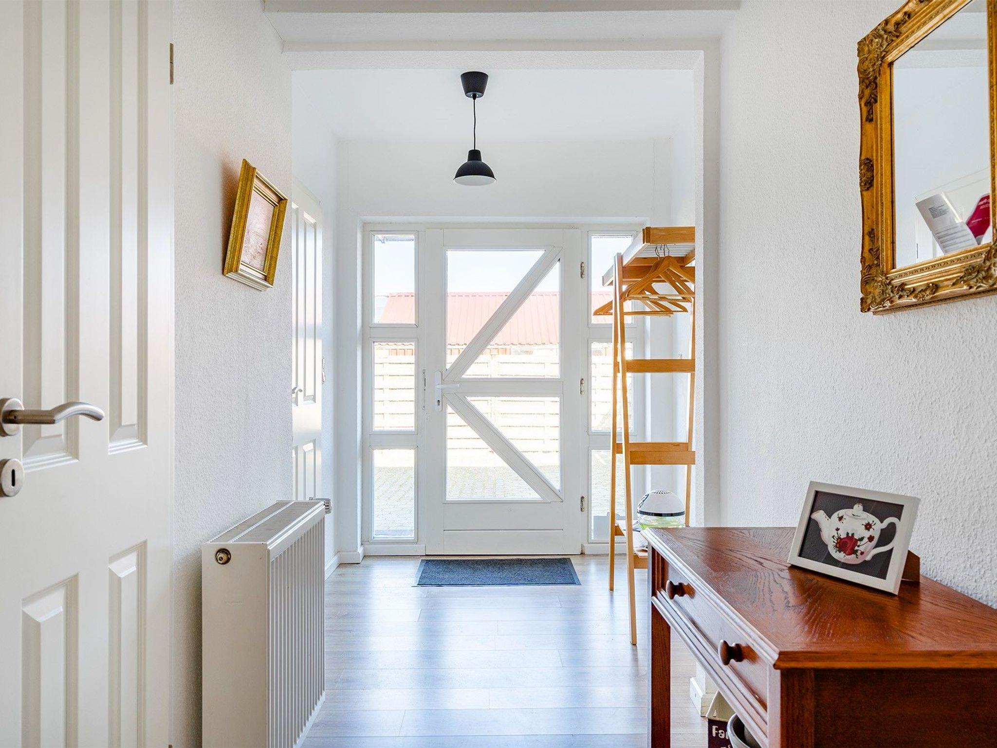Über den Flur gelangen Sie in den naturbelassenen Garten mit kleiner Terasse.