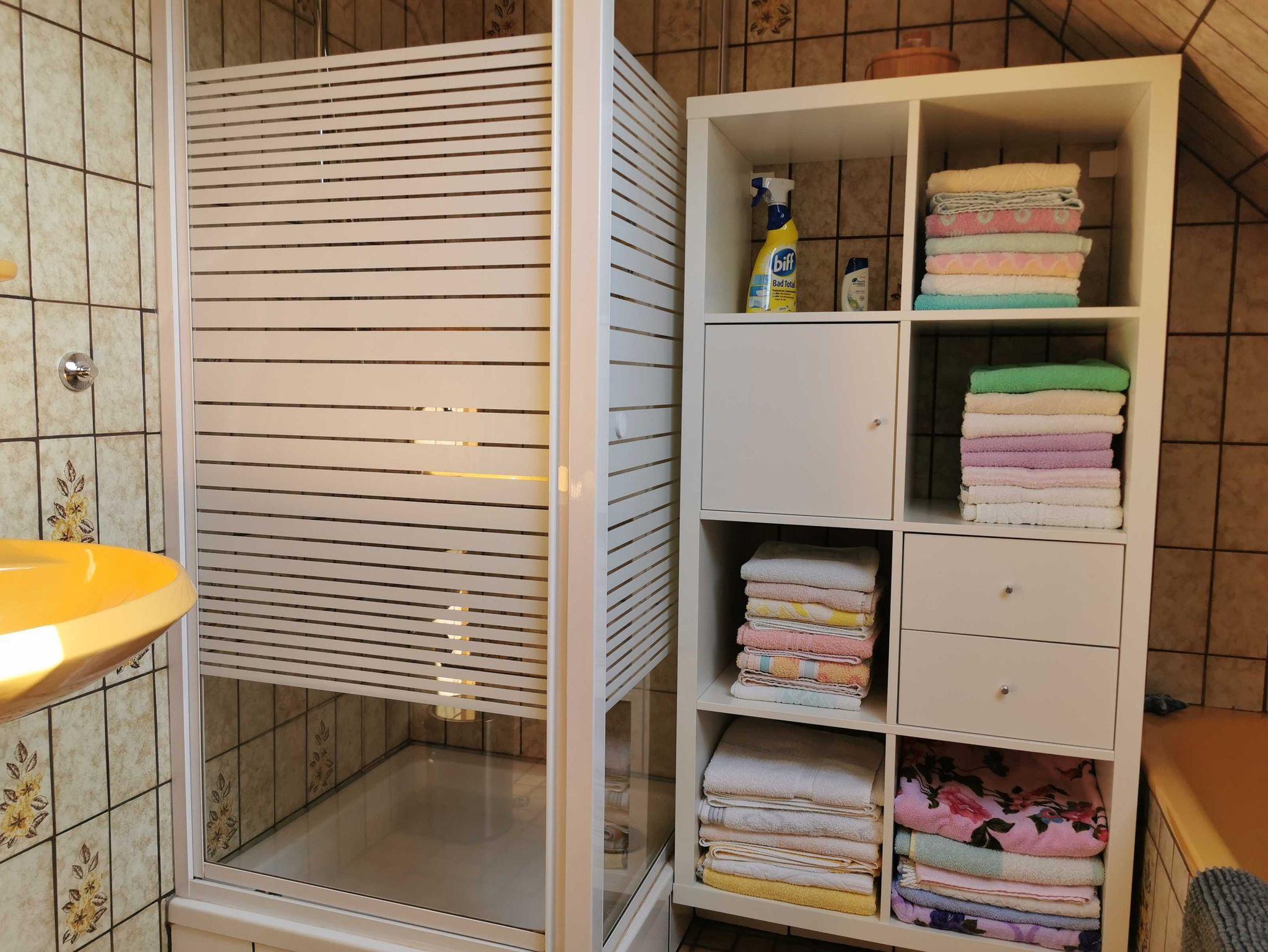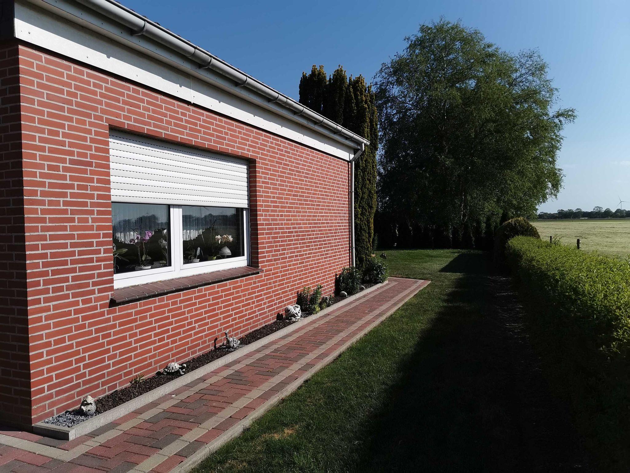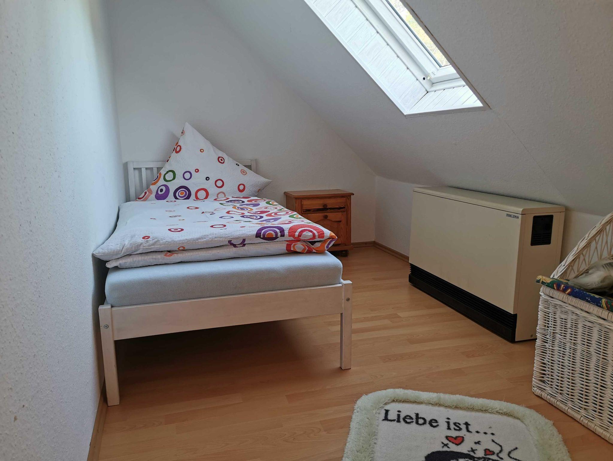 Großes, gemütliches Nichtraucher-Ferienhaus (Anbau, ca. 90 m2) für bis zu 6 Personen + Baby/Kleinkind mitten im „grünen Ostfriesland“. Das Ferienhaus ist von Wiesen & Feldern umgeben, so dass Sie ihren Urlaub mit viel Ruhe genießen können. Das ca. 90 qm große Ferienhaus (Anbau) befindet sich im Erd- und Obergeschoss. Durch den separaten Eingang betreten Sie den Vorflur mit Garderobe. Links befindet sich das Schlafzimmer 1 mit Doppelbett (180x200 cm) und Kleiderschrank, geradeaus ist das WC. Weiter links befindet sich die vollausgestattete Küche u.a. mit Cerankochfeld, Backofen, Mikrowelle, Kaffeemaschine, Wasserkocher und Toaster mit Essecke und Terrassenzugang auf die überdachte Ostterrasse mit Gartenmöbeln. Rechts vom Flur aus kommen Sie in das große Wohnzimmer mit weiterer Essecke, Ecksofa und Flachbildfernseher. Über einen Treppenaufgang im Flur erreichen Sie das Obergeschoss. Links befindet sich das separate WC und das Schlafzimmer 2 mit Einzelbett (120x200 cm) und Kleiderschrank. Vom Treppenaufgang rechts befindet sich das Badezimmer mit Dusche und Badewanne sowie Waschtisch und Waschmaschine inkl. Handtücher, das Schlafzimmer 3 mit Einzelbett (90x200 cm) und Kommode und das Schlafzimmer 4 mit Doppelbett (180x200 cm) und Kleiderschrank. In allen Schlafräumen besteht räumlich die Möglichkeit ein Kinderbett aufzustellen.