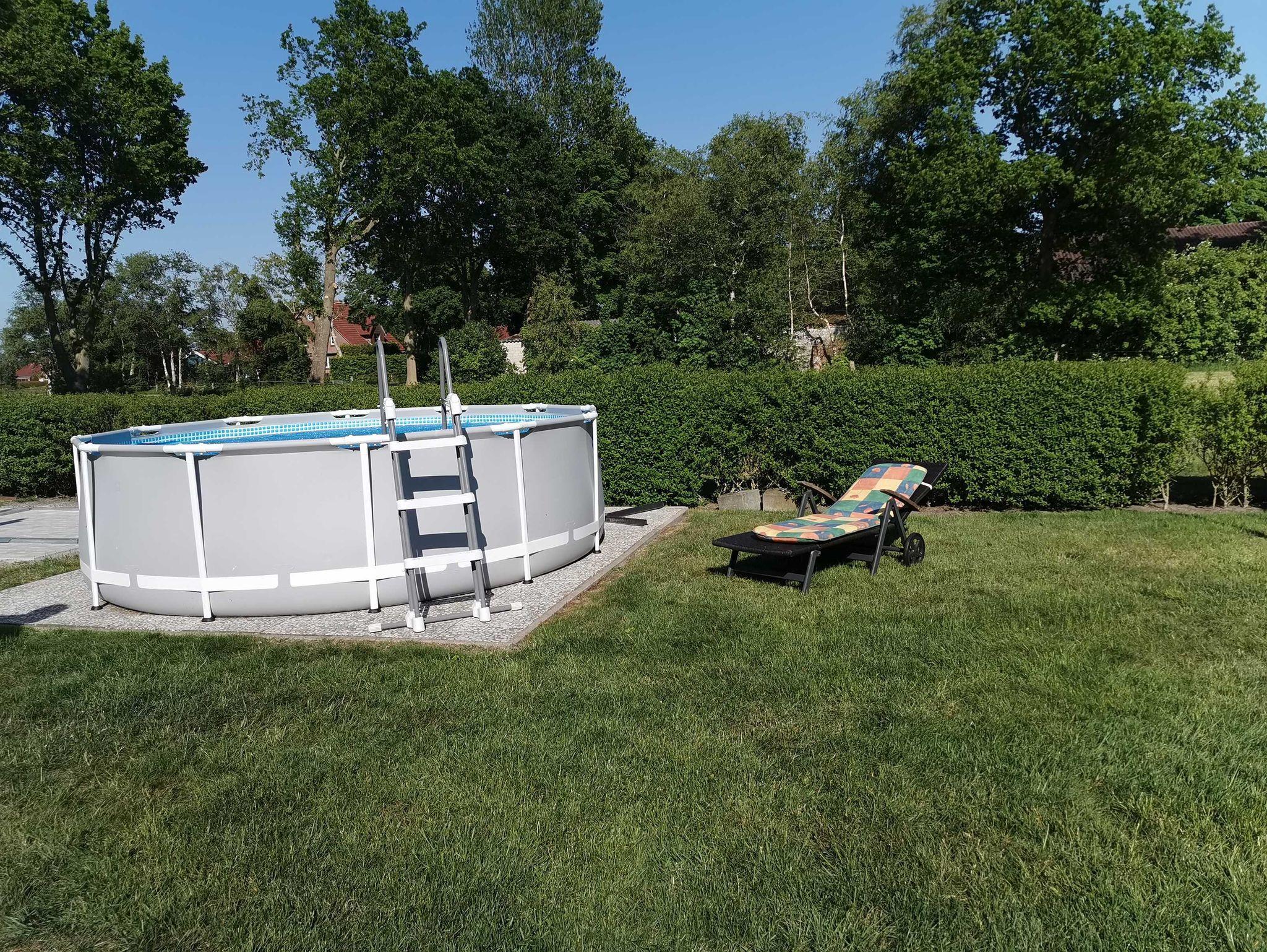Der große Garten bietet ausreichend Platz zum entspannen und erholen. Aber auch Kindern bietet er viel Platz zum spielen und bewegen. Spielgeräte wie Schaukel, Sandkasten, Trampolin und in den Sommermonaten ein Pool zur Mitbenutzung stehen zur Verfügung und lässt den Kindern den Urlaub unvergesslich werden. Ein Grill, Fahrräder auf Anfrage und ein aufstellbarer Waschetrockner stehen zur kostenlosen Nutzung für Sie bereit. Frische Eier von den eigenen Hühnern oder Enten und frische Milch von dem Bauer nebenan können bestellt werden.