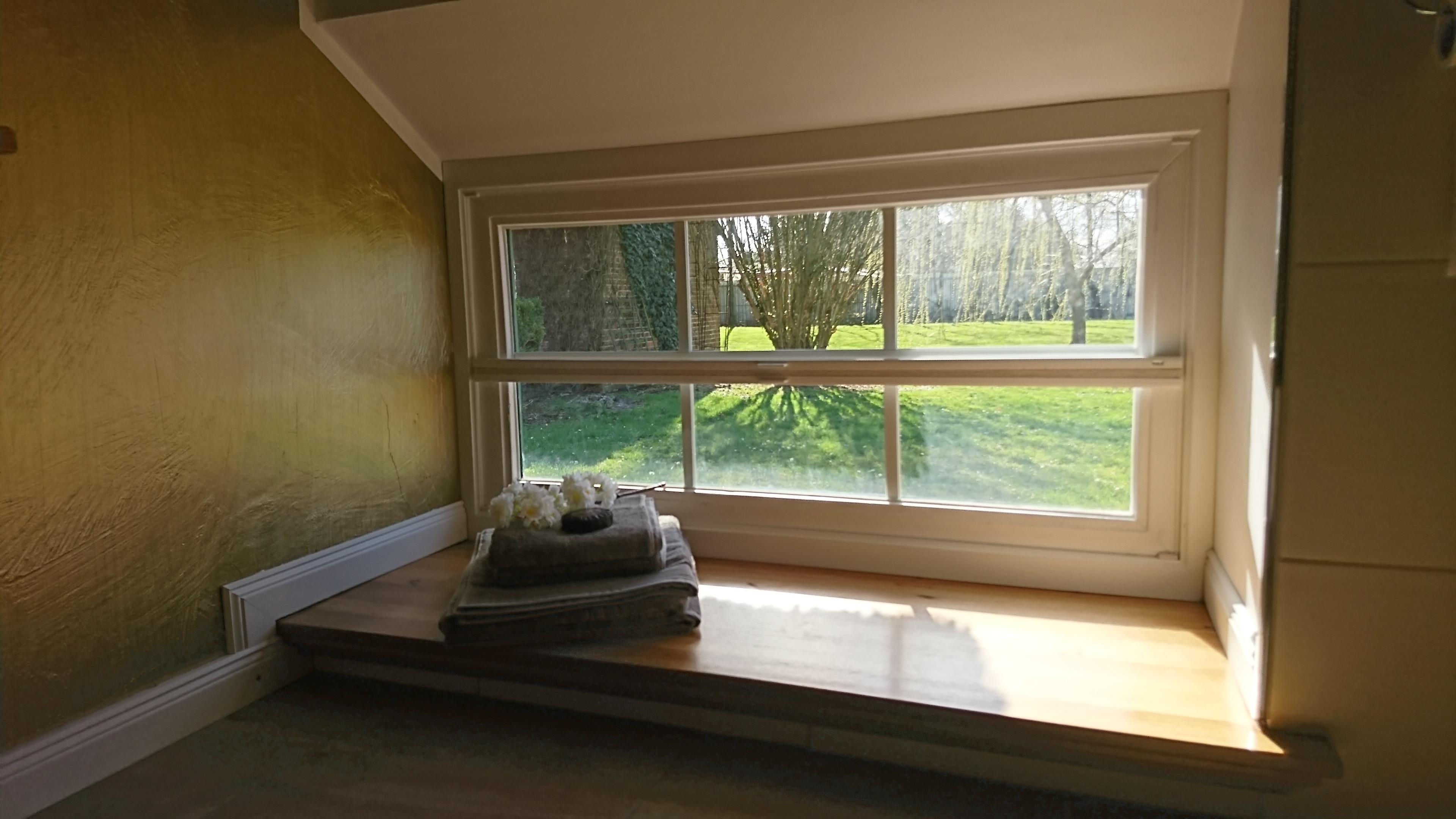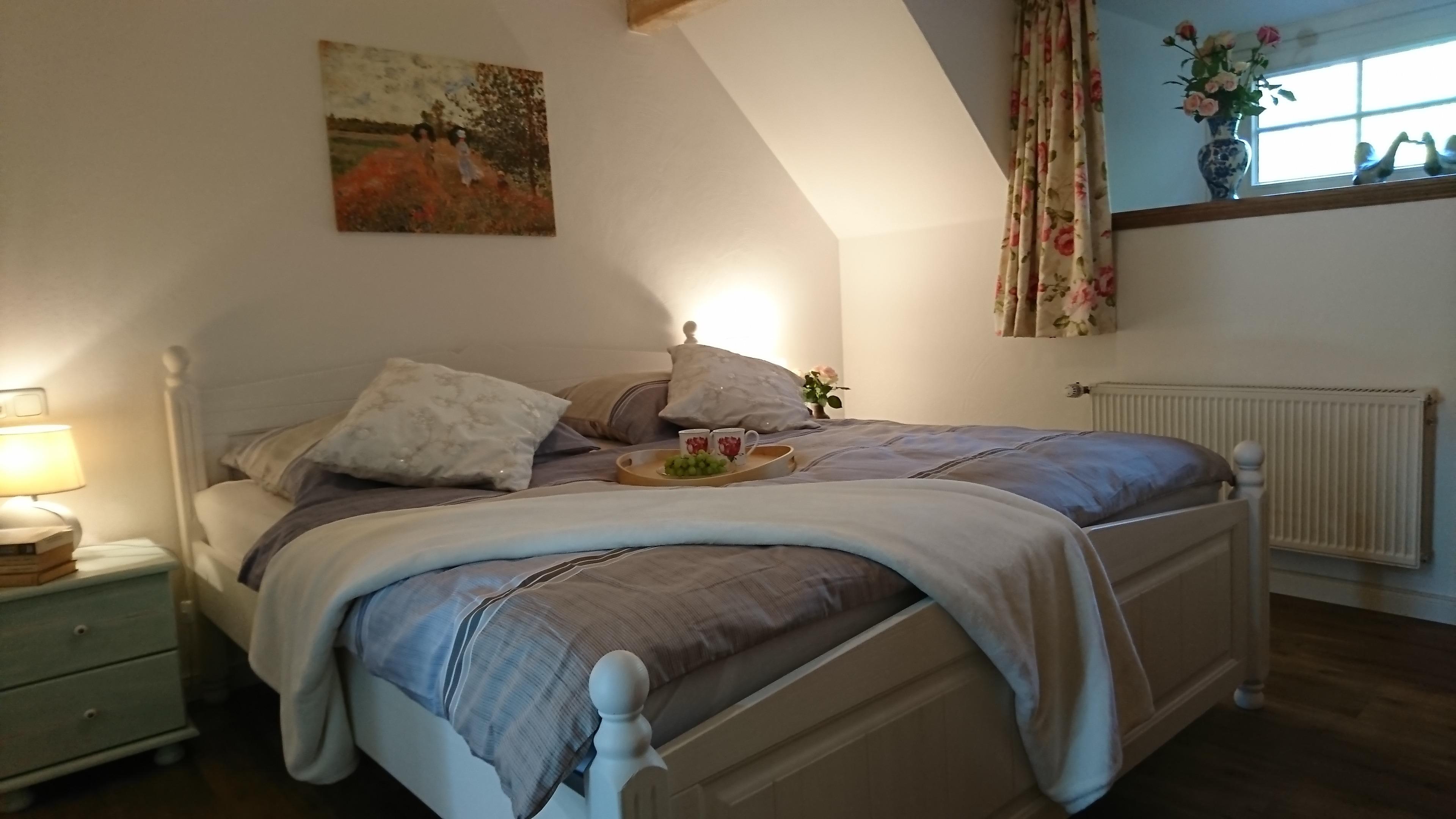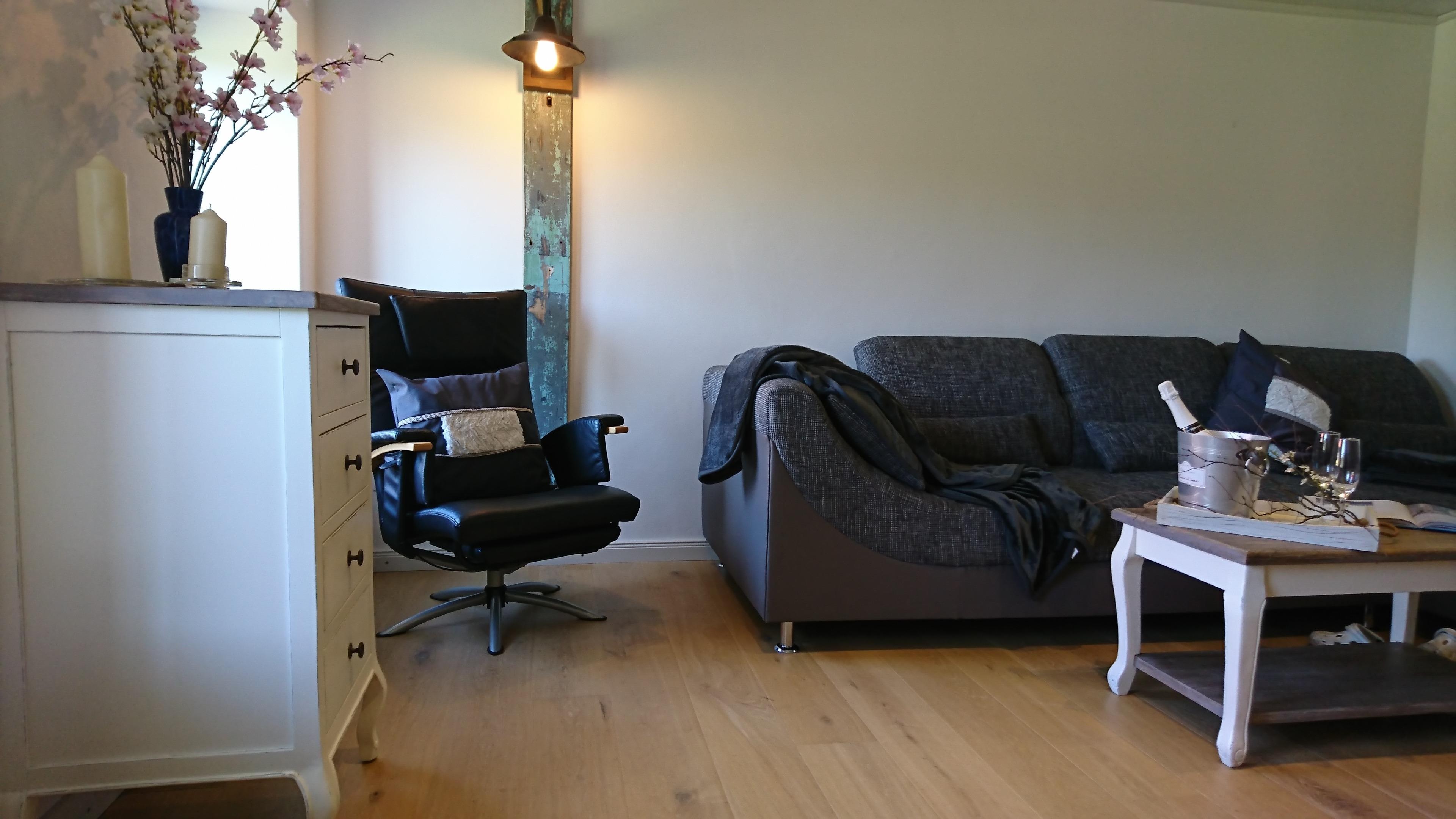 Wohnung 3 - De Tuun: Die umfangreich und komfortabel im dezenten Landhausstil ausgestattete Ferienwohnung im Erdgeschoss eignet sich für max. 4 Personen und Kleinkind. Die großzügigen Räumlichkeiten bieten einen weiten Blick auf den Garten, Felder und das gegenüberliegende Naturschutzgebiet.