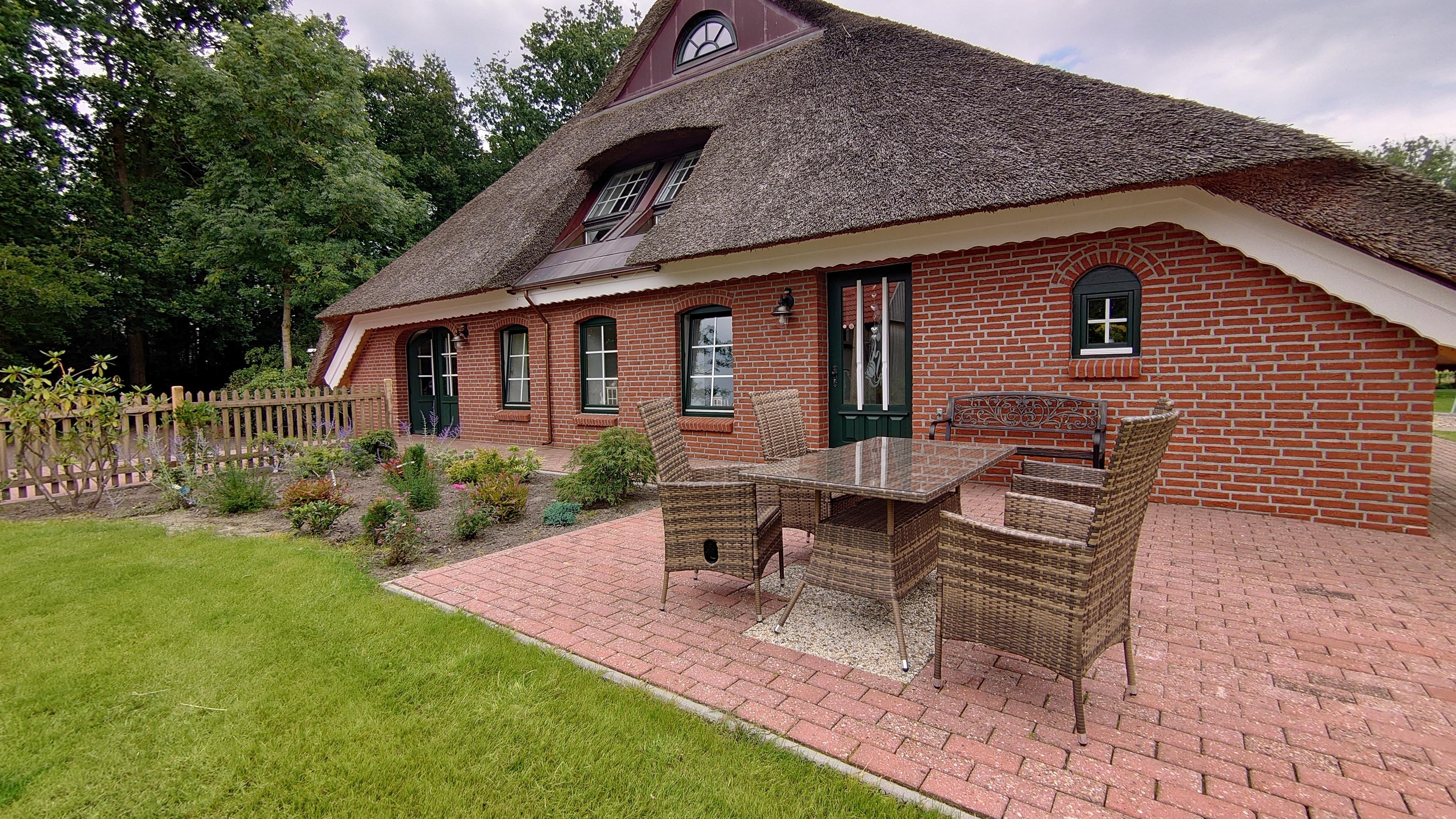 Gemütliche Ferienwohnung im reetgedeckten Landhaus mit großem Garten und Naturblick in Ihlow.