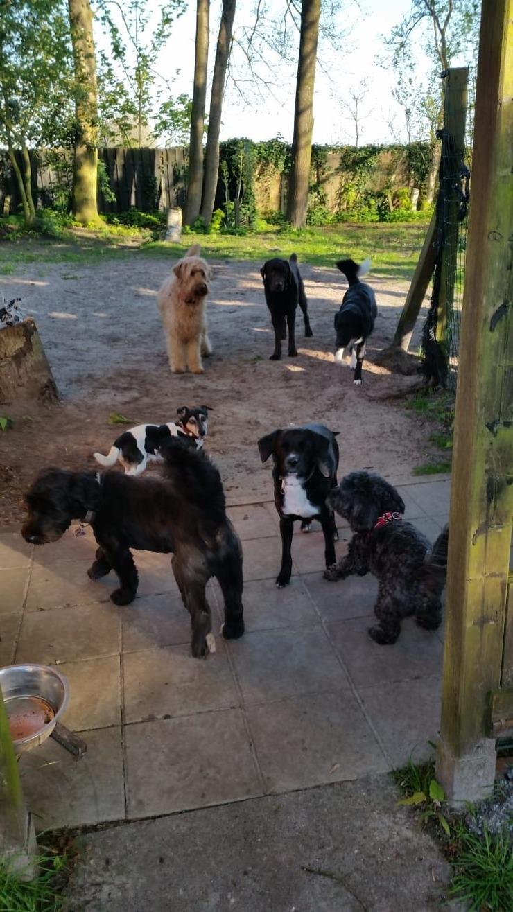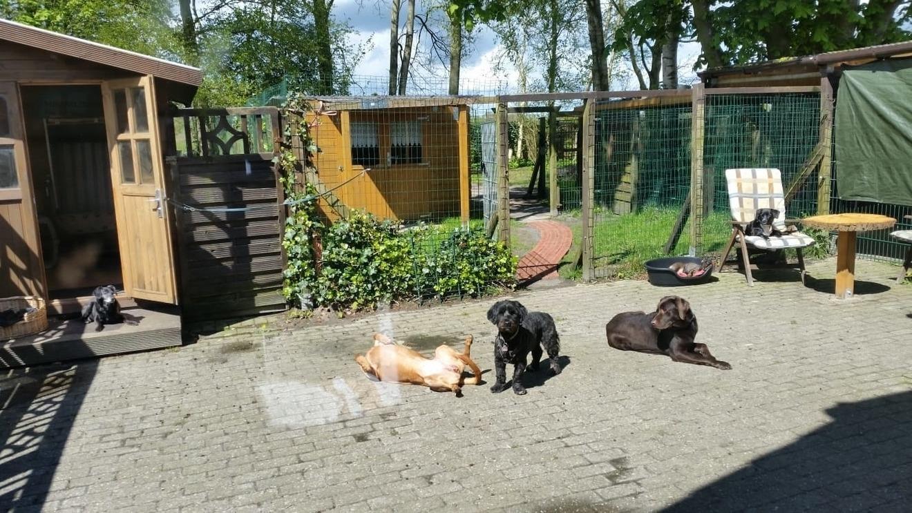 Im hinteren Teil unseres Grundstückes liegt unsere Hundetagesstätte/Pension. Es befindet sich zusätzlich ein seperater Garten mit Sitzgelegenheit und grünem Ausblick unter Bäumen für unsere Gäste.