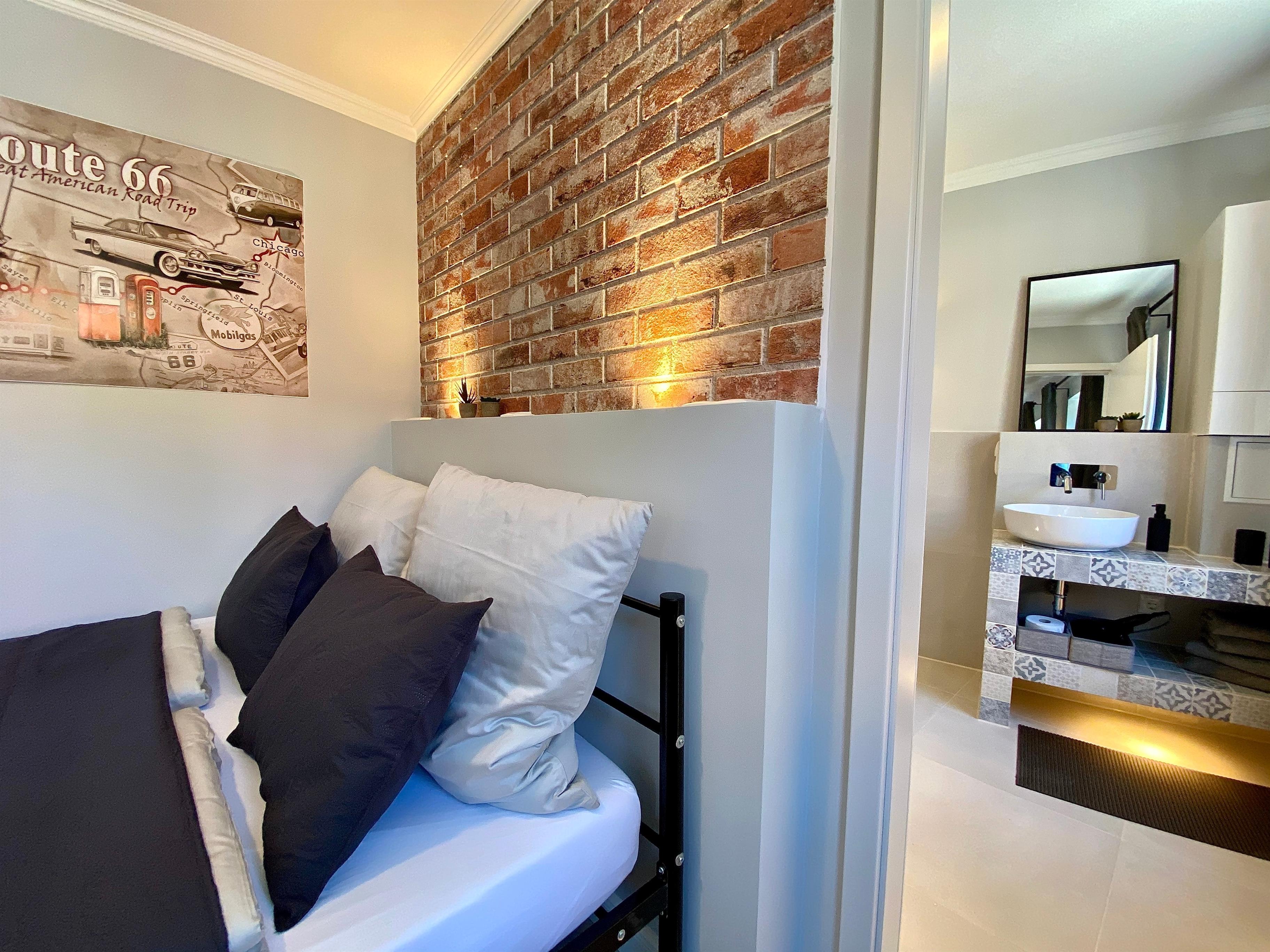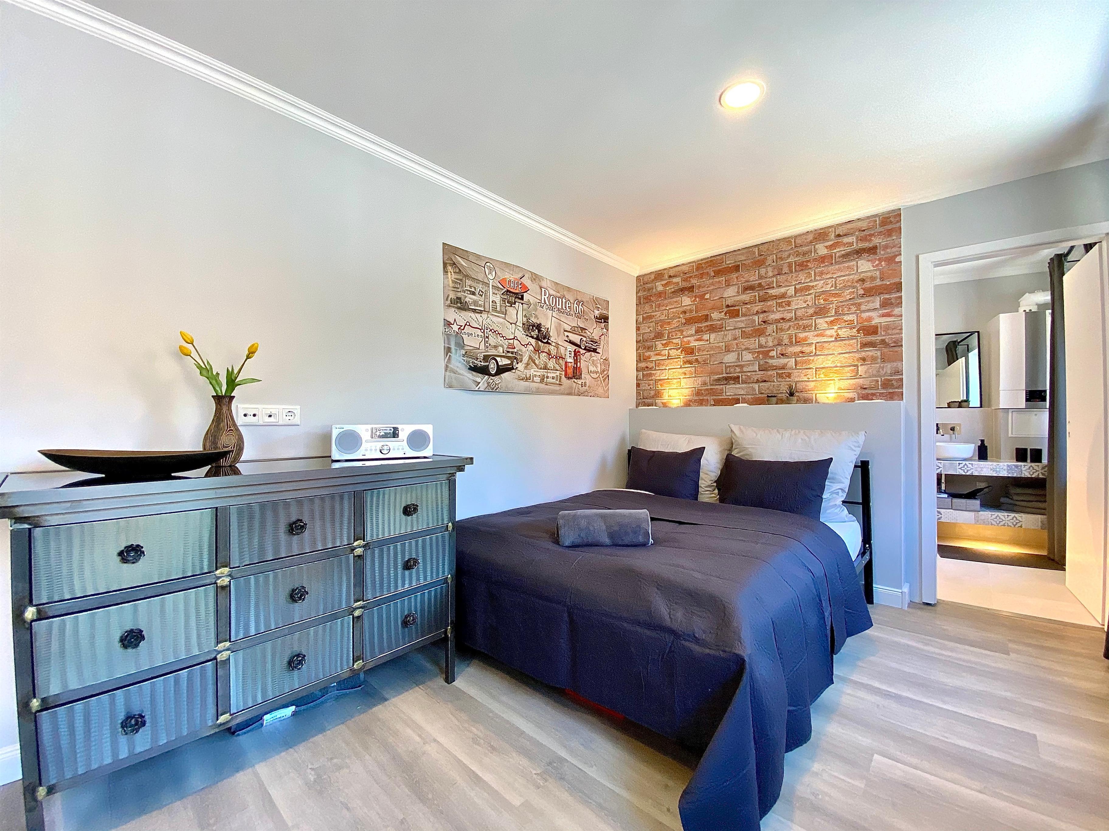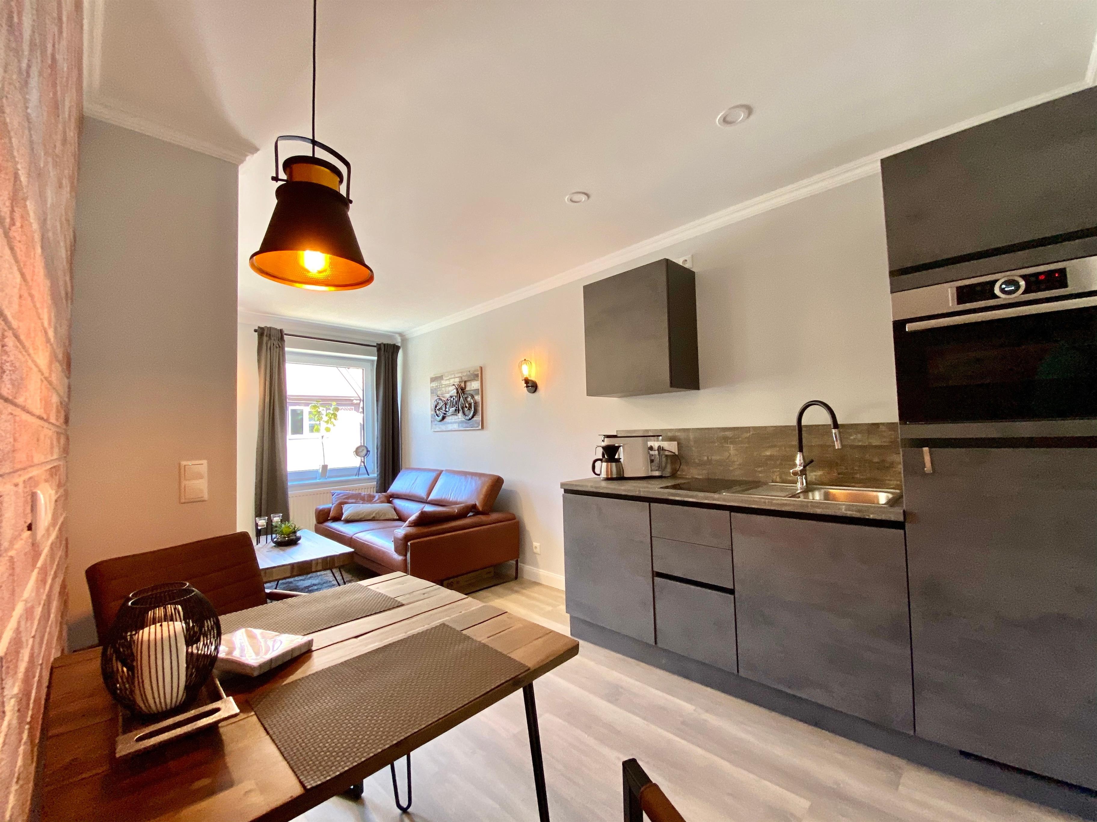 Die Einrichtung der Ferienwohnung ist im Industrie-Style eingerichtet und bietet mit ca. 38 qm besten Komfort für bis zu 2 Personen. Sie befindet sich im 1. Obergeschoss.