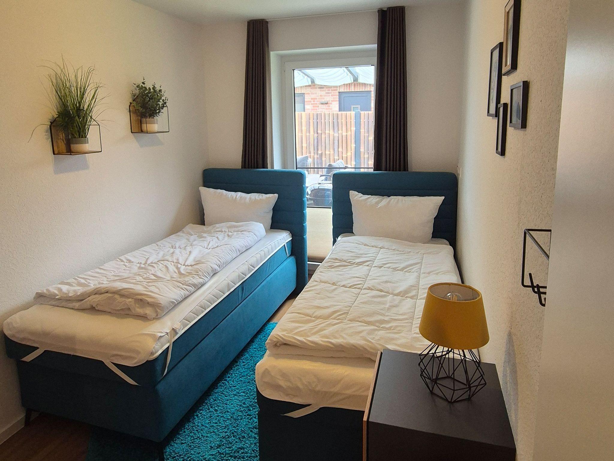 • Schlafzimmer 2 im Erdgeschoss: 2 Einzelbetten 100x200 cm (Boxspring)