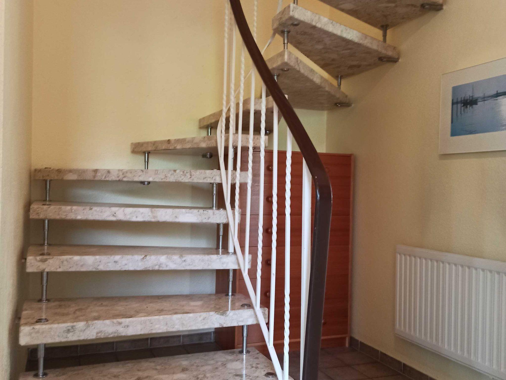 Das Ferienhaus (80 qm) über zwei Etagen verfügt über ein großzügiges Wohnzimmer mit Couchgarnitur, Esstisch für vier Personen und Kinderstuhl, diverse Medien; separate Küche; drei Schlafzimmer (DZ mit Kinderbett + 2EZ). 2 WCs (Gäste-WC unten und Bad/WC), Badewanne mit Dusche. Bettwäsche und Handtücher werden gestellt. Sat-TV mit einigen Dutzend TV- und Radioprogrammen, Flachbildschirm, CD/DVD-Player. Große Auswahl an CDs, DVDs und Büchern. Separate voll ausgestattete Küche mit Sitzgelegenheit für zwei Personen, Kühlschrank mit Gefrierfach, Kaffeemaschine, Wasserkocher und Mikrowelle.