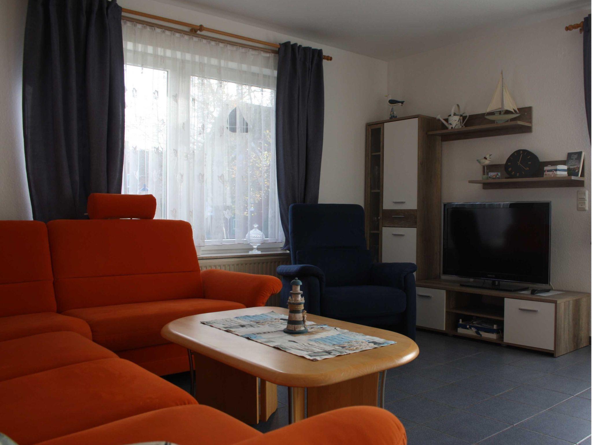 Fewo 68qm, großes Wohn/Eßzimmer mit Hochstuhl, SAT-TV, neue Küche mit Herd und Ceranfeld, Kühlschrank mit Gefrierfach, Geschirrspüler, Kaffeemaschine, Toaster, Brotmaschine uvm.