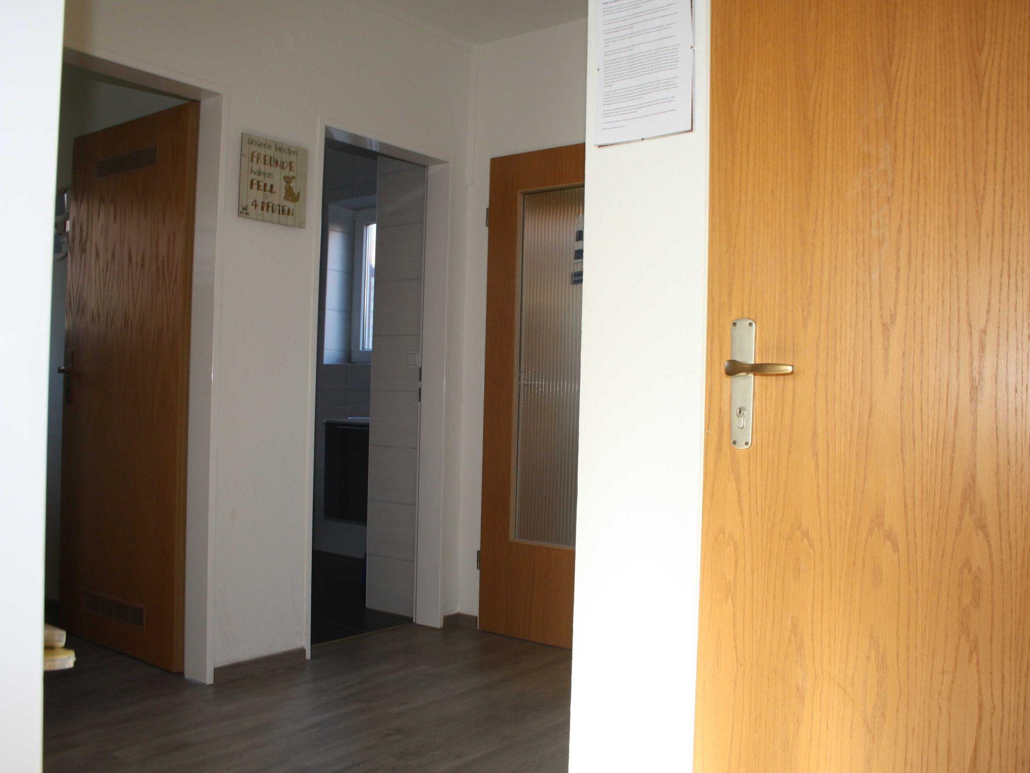 Das Grundstück ist eingezäunt. Haustiere in der Erdgeschosswohnung erlaubt. Einige Fenster haben Plisses und Fliegengitter. Belegung max. 5 Erwachsene und ein Kleinkind.
