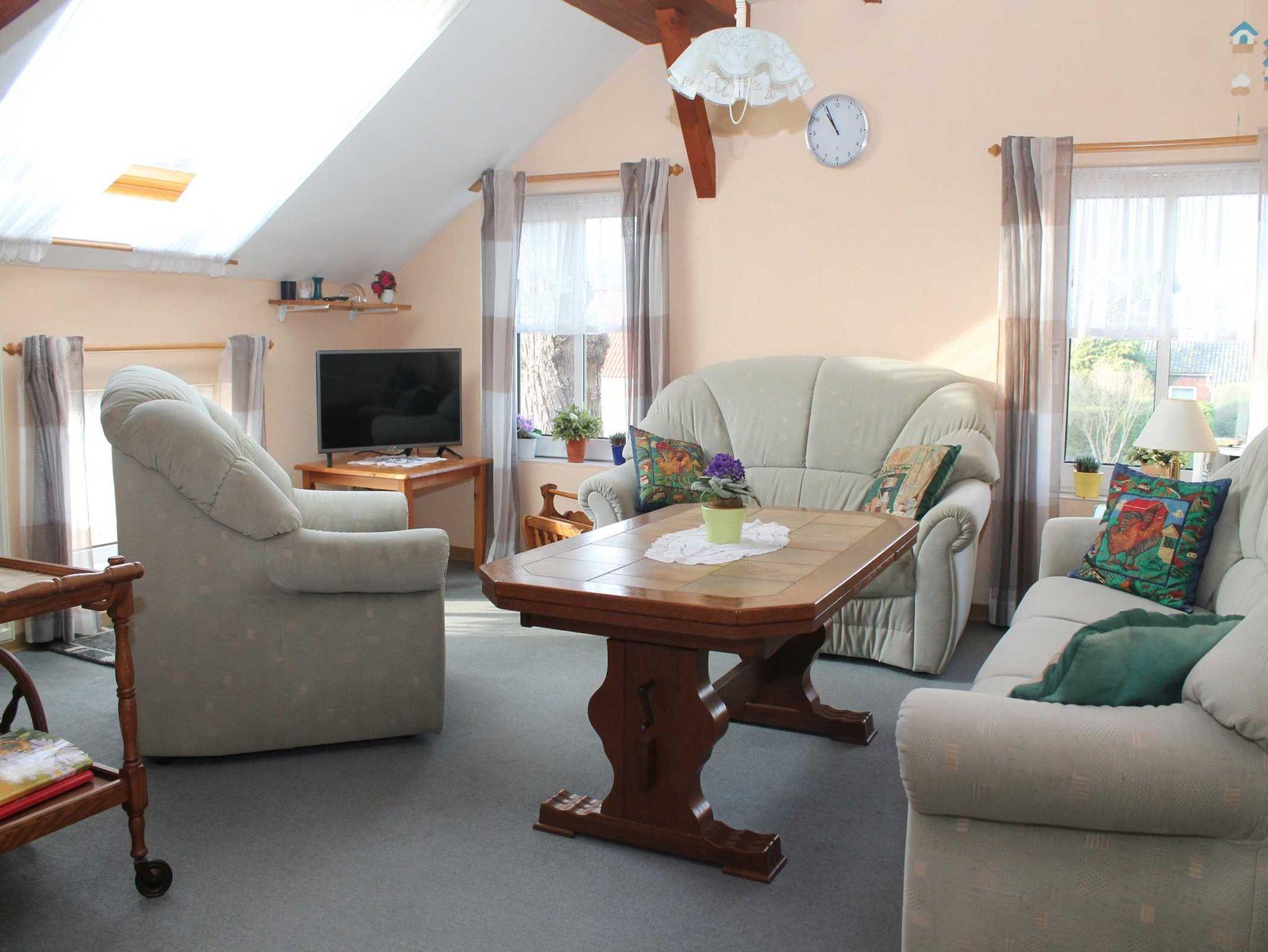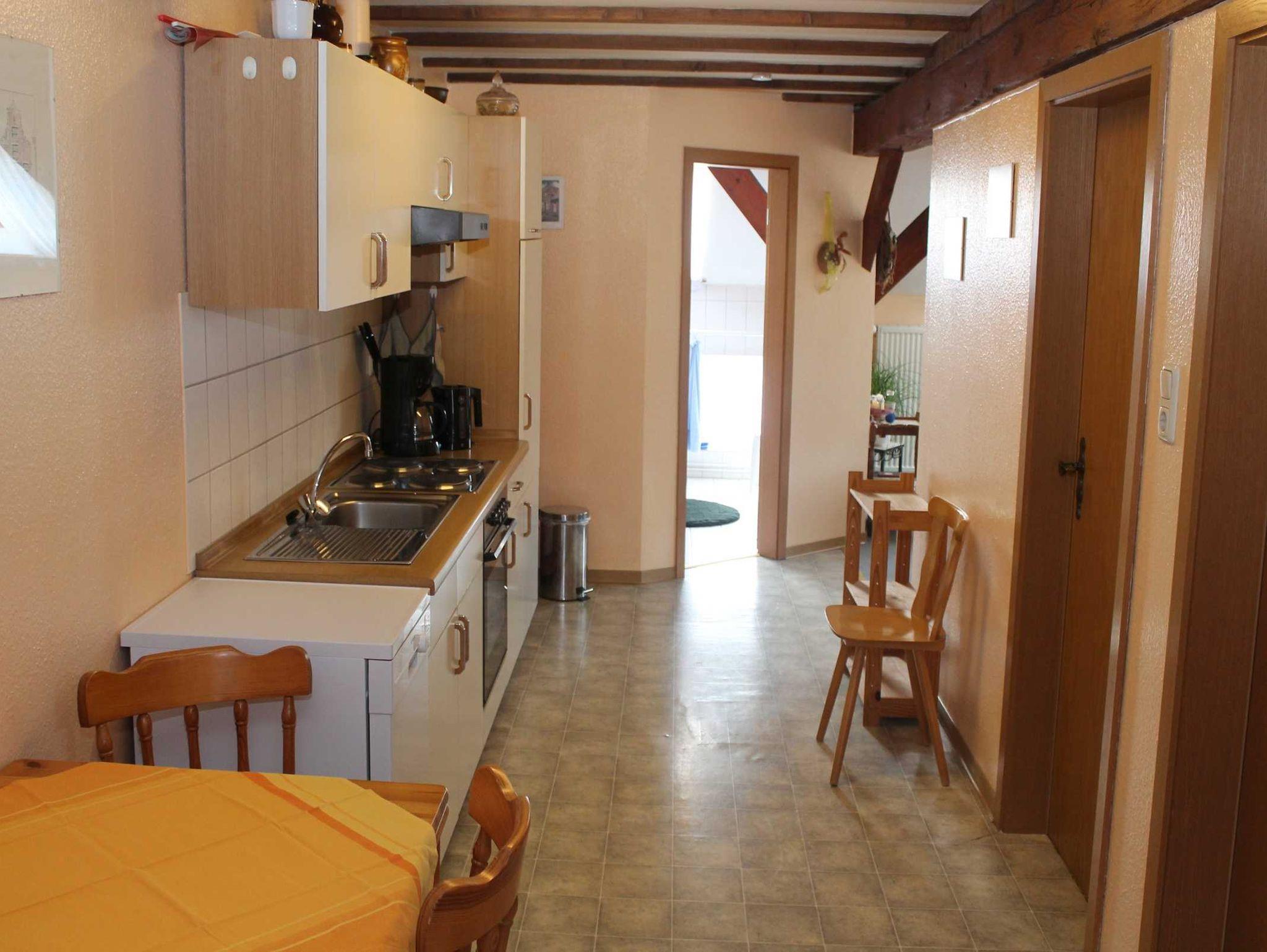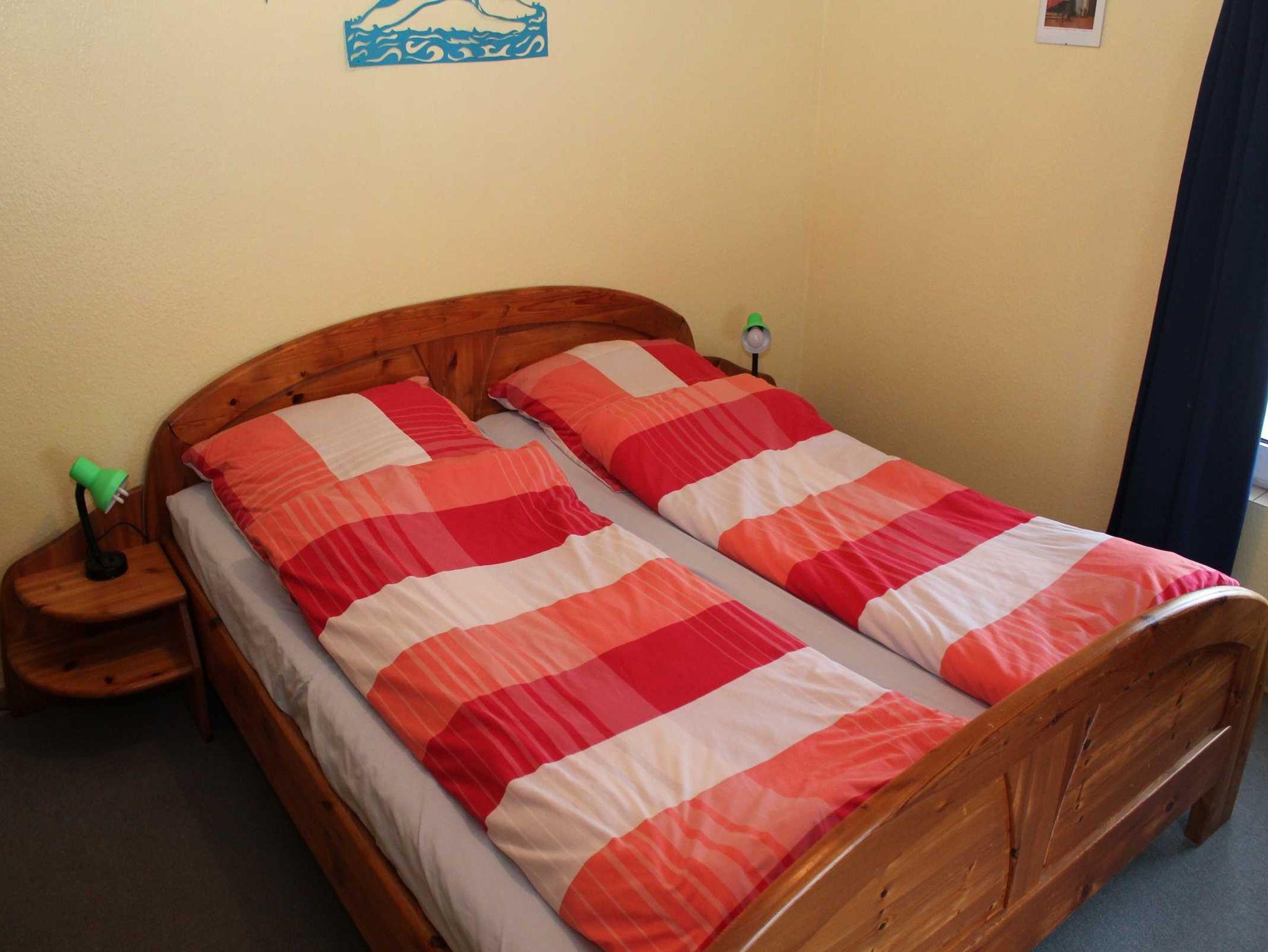 Die Ferienwohnung 2 hat eine Wohnfläche von 62 m². Sie enthält ein Doppelbettzimmer und ein weiteres Zimmer mit 3 Betten (ein Hochbett und ein normales Bett). Badezimmer mit Dusche und WC.