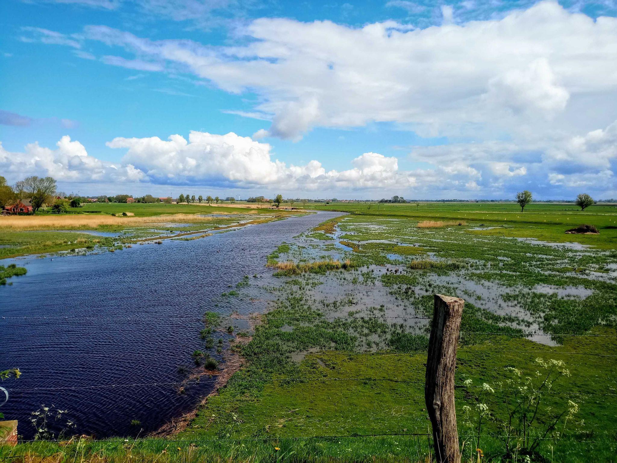 Gemütliches Ferienhaus am Dollart-Deich mit Kaminofen, windgeschützter Terrasse und Blick auf Ostfriesland.