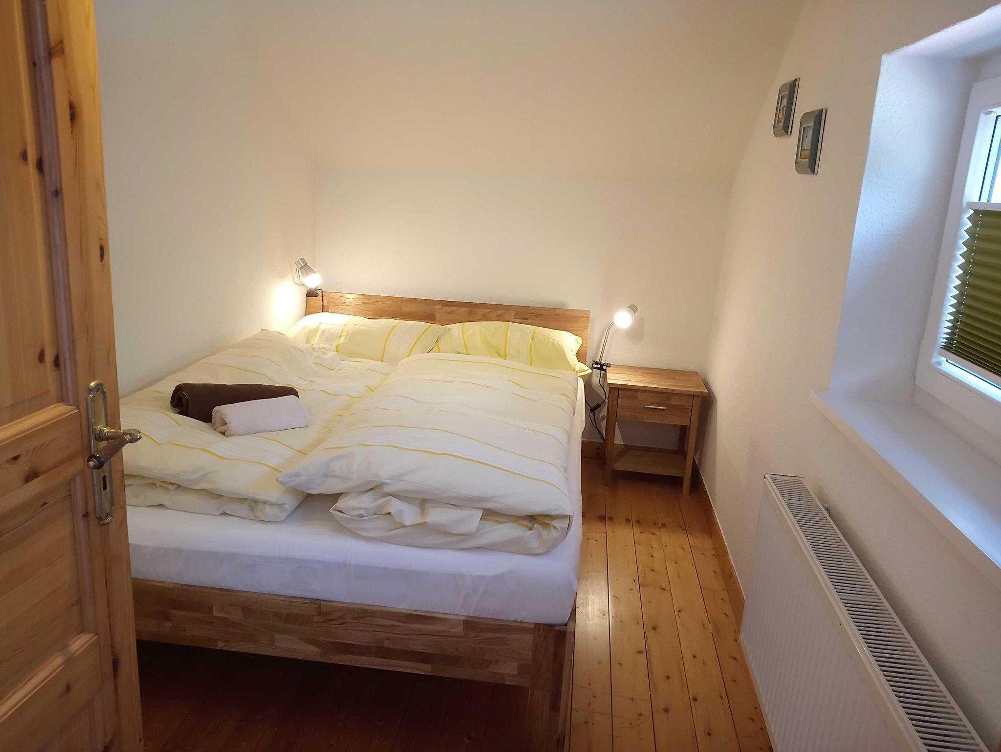 Gemütliches Nichtraucherhaus mit einem Schlafzimmer unten mit Doppelbett (140*200 cm, ohne Fußteil), einem Kinderbett (Reisebett) und Insektenschutz am Fenster sowie einer Schlafempore mit einem Doppelbett (200*200 cm, ohne Fußteil). Das 2020 renovierte Haus verfügt über einen großzügigen Wohnraum mit Kaminofen, einer vollausgestatteten Küche, einem Bad mit ebenerdiger Dusche, W-LAN, einer windgeschützten Terrasse mit Gartenmöbeln und Grill sowie einen Strandkorb zum Relaxen.Ein abschließbarer Fahrradraum gehört auch dazu.