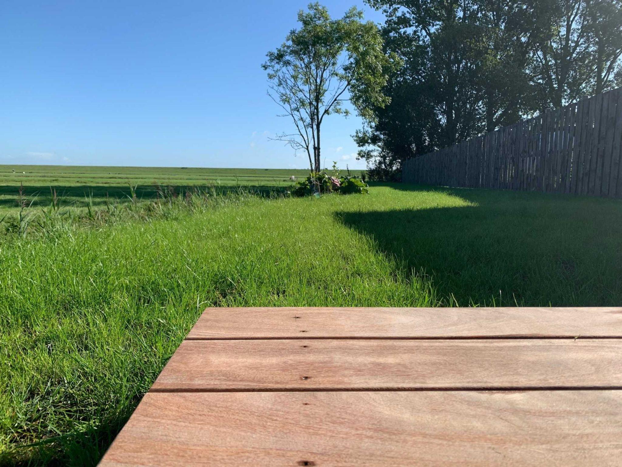 angrenzend weiden. Eine große Holzterrasse mit gemütlichen Gartenmöbeln lädt zum