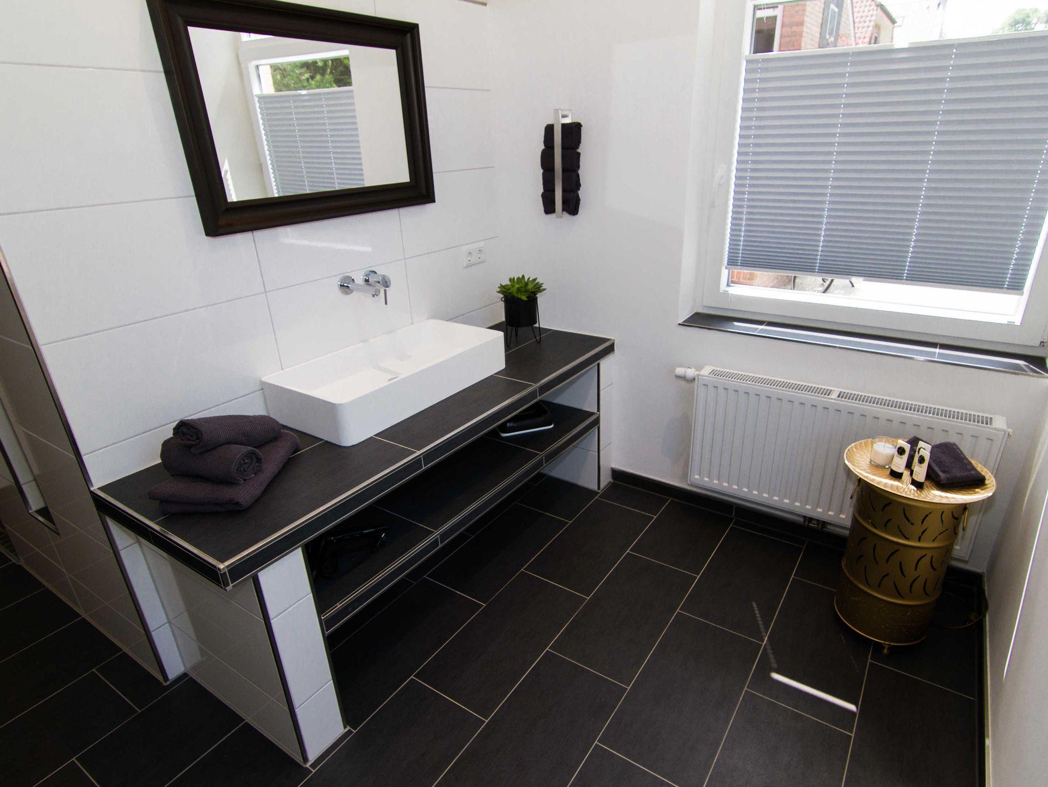 Starten Sie den Tag in unserem komplett ausgestattetem Badezimmer mit bodentiefer Dusche, Handtuchwärmer, Fußbodenheizung und Fön.