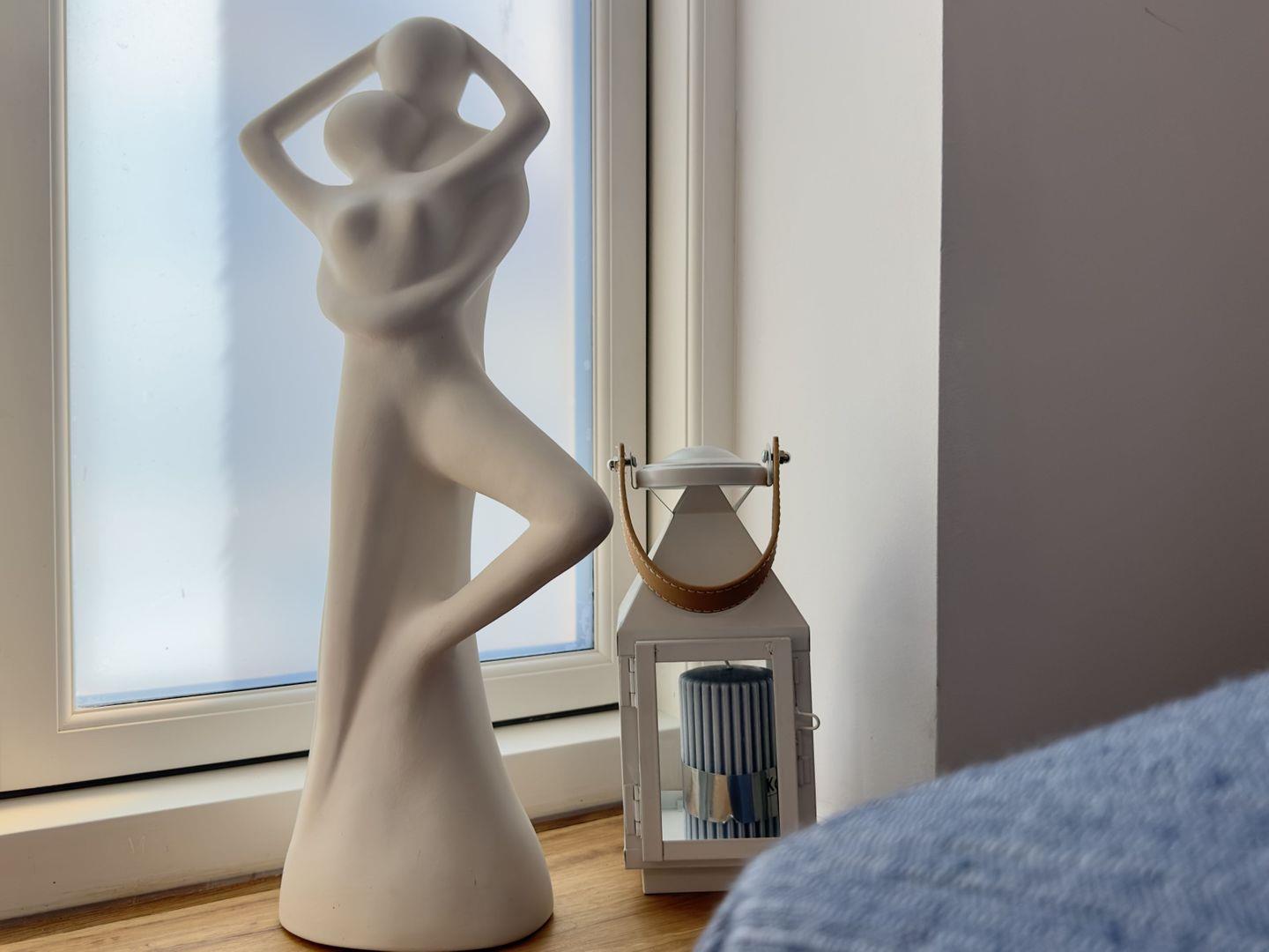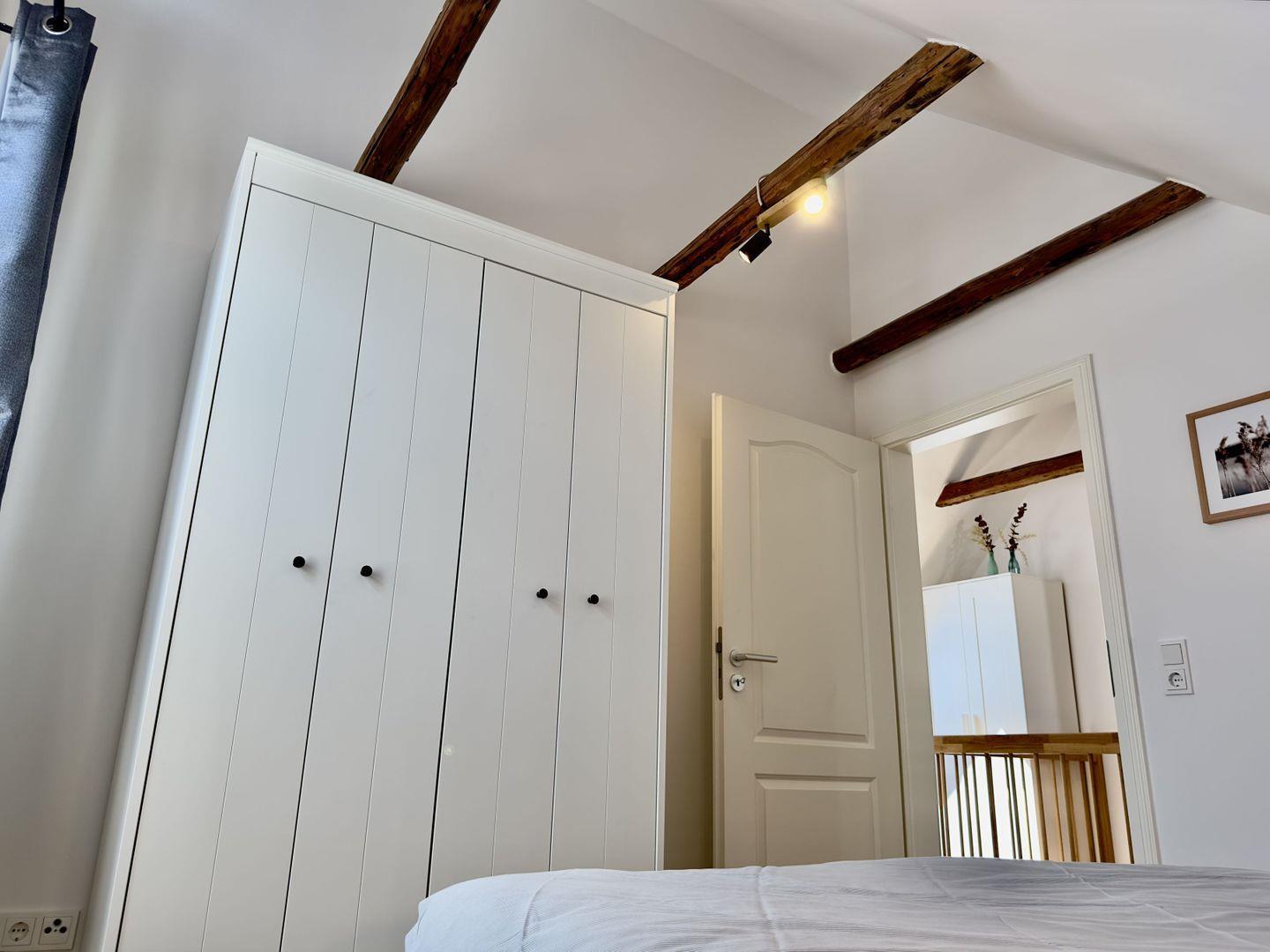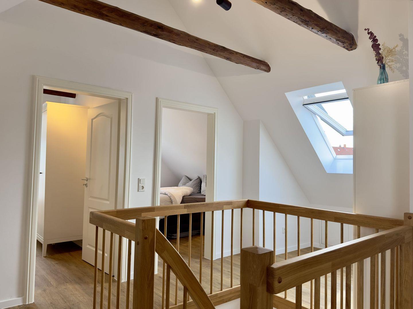 Im Obergeschoss können Sie zudem die alten Holzbalken des denkmalgeschützten Hauses bewundern, die dem Raum eine besondere Atmosphäre verleihen. Das gesamte Haus ist mit viel Liebe zum Detail eingerichtet, sodass moderne Annehmlichkeiten und historische Elemente harmonisch aufeinander treffen und eine einzigartige, wunderschöne Wohnatmosphäre schaffen.