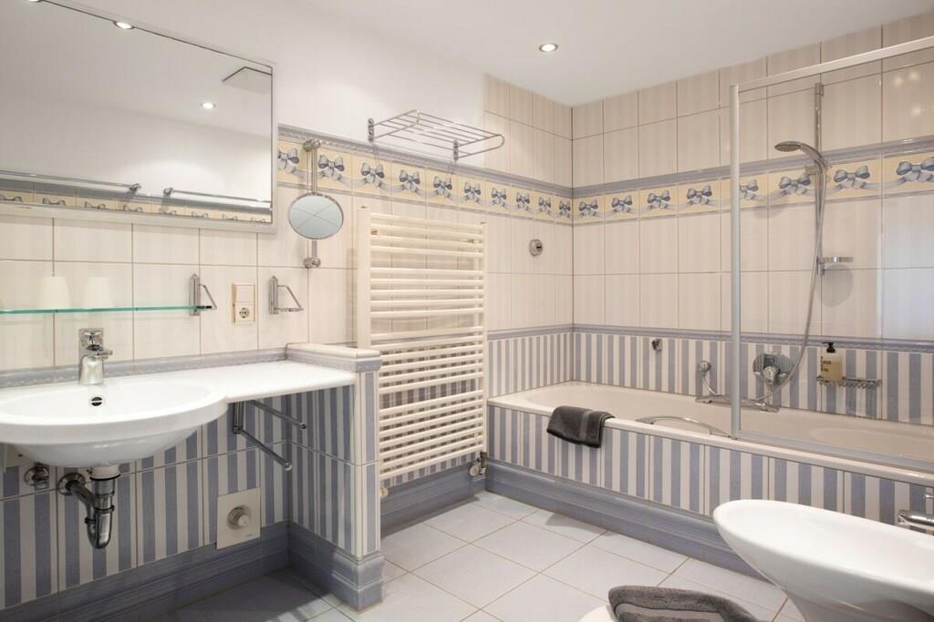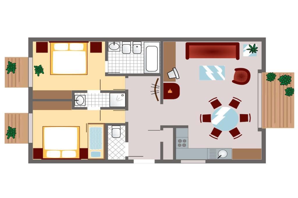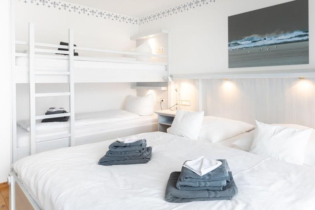 Hell, freundlich und luxuriös eingerichtetes Feriendomizil. Zierstück ist der große Kachelkamin und die geschmackvolle Einrichtung des geräumigen Wohnraums. Alle anderen Räume sind ebenfalls luxuriös ausgestattet. Die zwei Schlafzimmer sind mit Einbauschränken und Doppelbetten ausgestattet. Ein Schlafzimmer verfügt zusätzlich über ein Hochbett. In der Wohnung befindet sich ein Gäste WC, ein Duschbad mit unmittelbarer Anbindung zu beiden Schlafzimmer und ein Vollbad mit Anbindung zu einem Schlafzimmer. Die Schlafzimmer und der Wohnraum verfügen jeweils über einen Balkon, die Raum zum Relaxen und Sonnenbaden bieten.