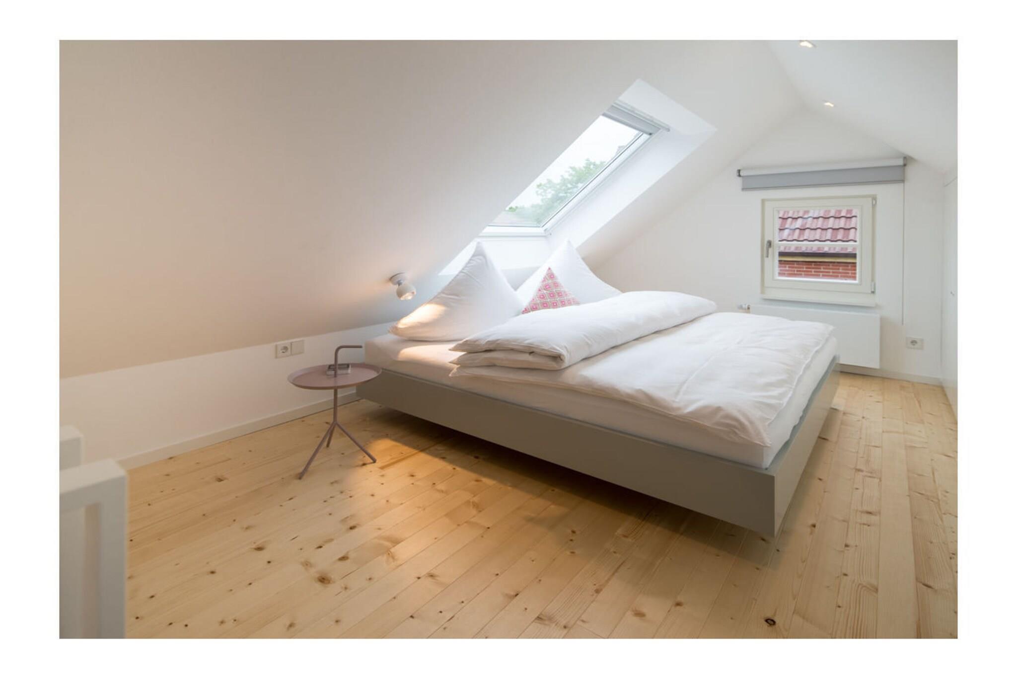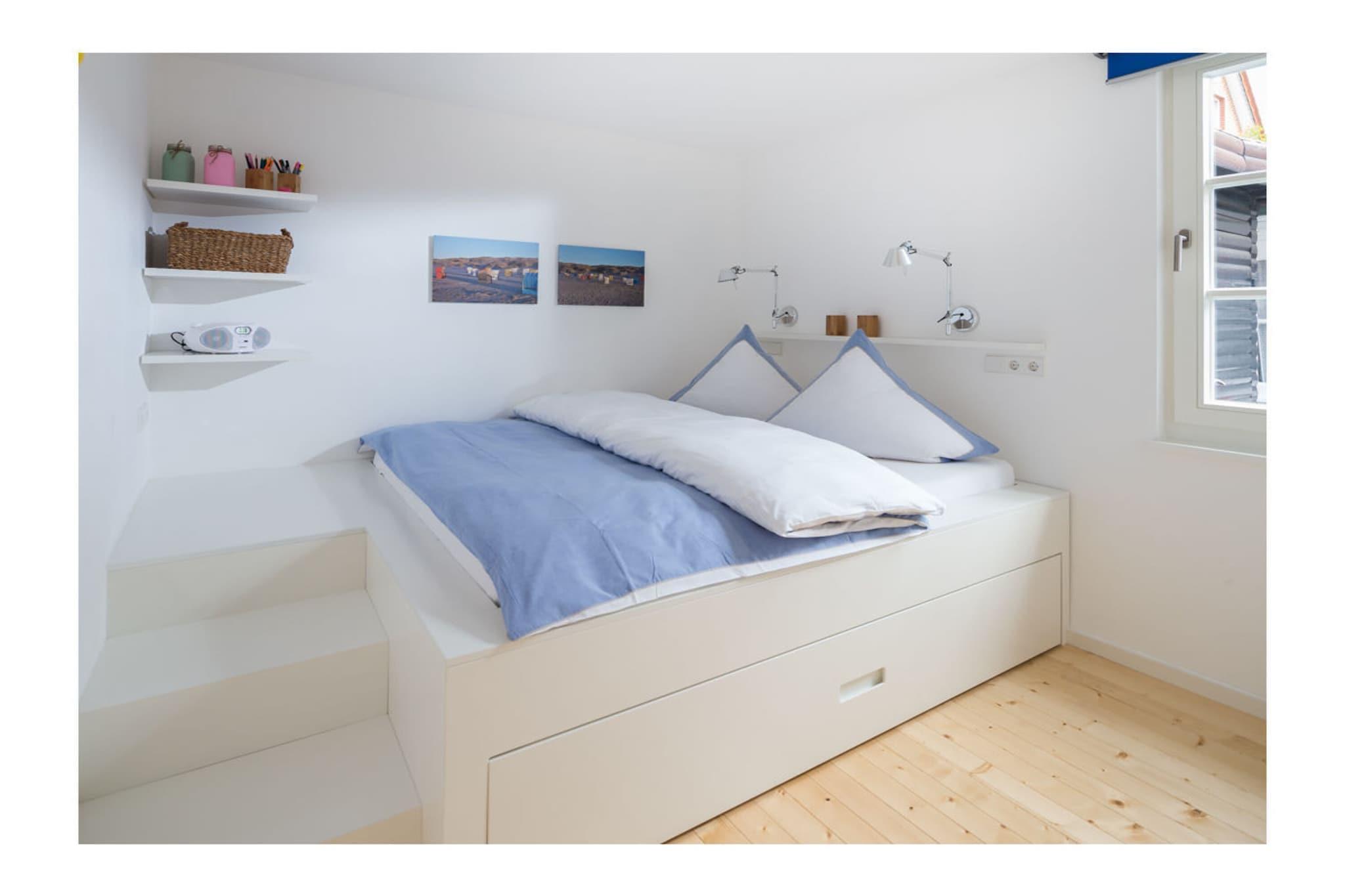 Das Haus verfügt über insgesamt 6 Betten (2 im offenen Galeriegeschoss, welches nicht mit einer Kindersicherung abgesichert ist, ein weiteres in einem Kämmerchen im Galeriegeschoss, sowie 2 weitere Betten plus ein Ausziehbett im separaten Zimmer im Erdgeschoss). Eine gehobene Ausstattung ist Markenzeichen des Hauses. Fußbodenheizung, Sauna und Gaskamin runden das Angebot ab. Des weiteren gibt es einen wunderschönen und hellen Wohnbereich mit einer offener Küchenzeile und großem Esstisch. Die beiden Bäder sind großzügig ausgestattet, einmal mit Badewanne und zusätzlich einer Dusche. Kürzere Aufenthalte und Rabatte sind in freien Restzeiträumen oder bei kurzfristigen Anfragen möglich.