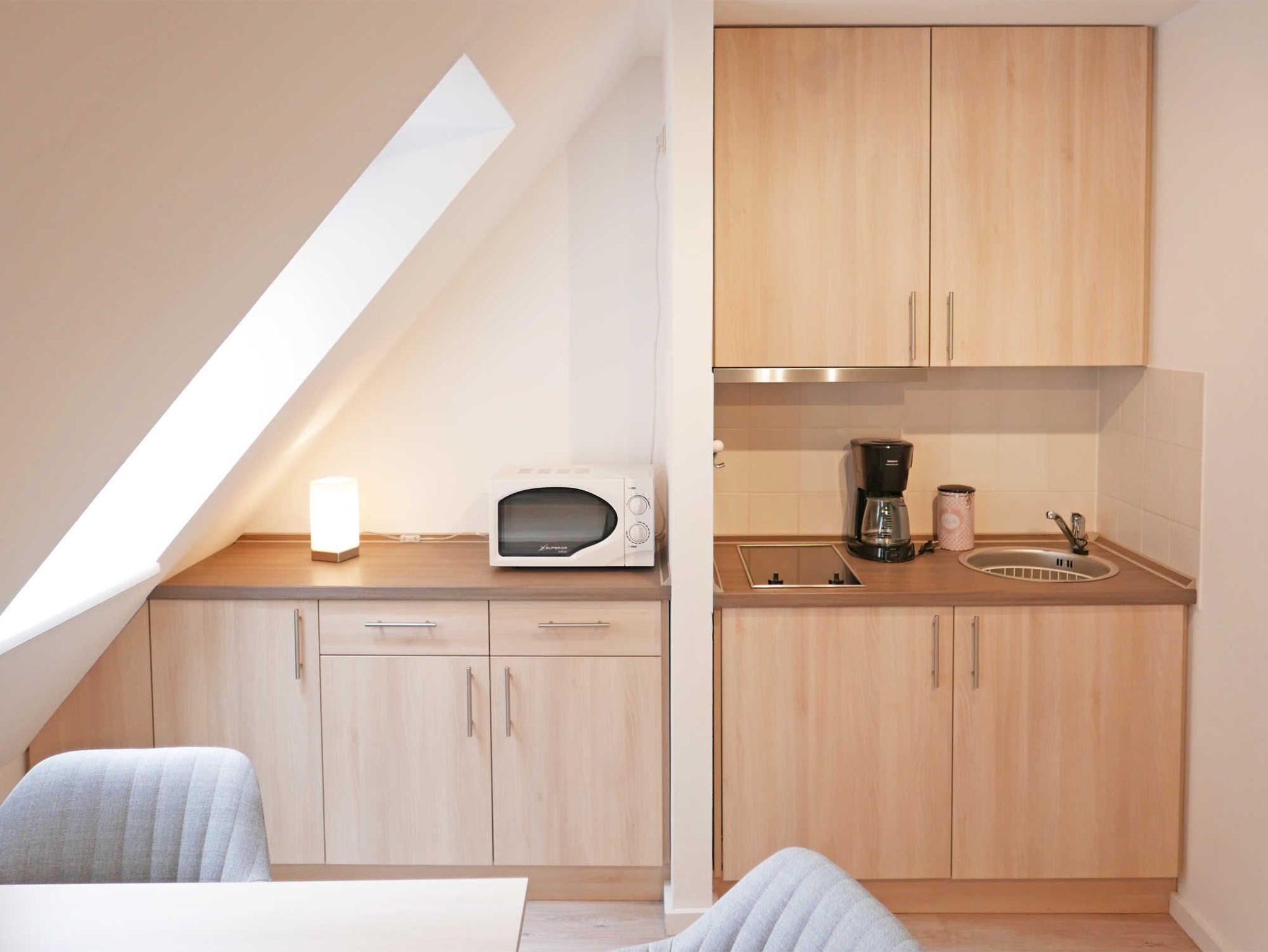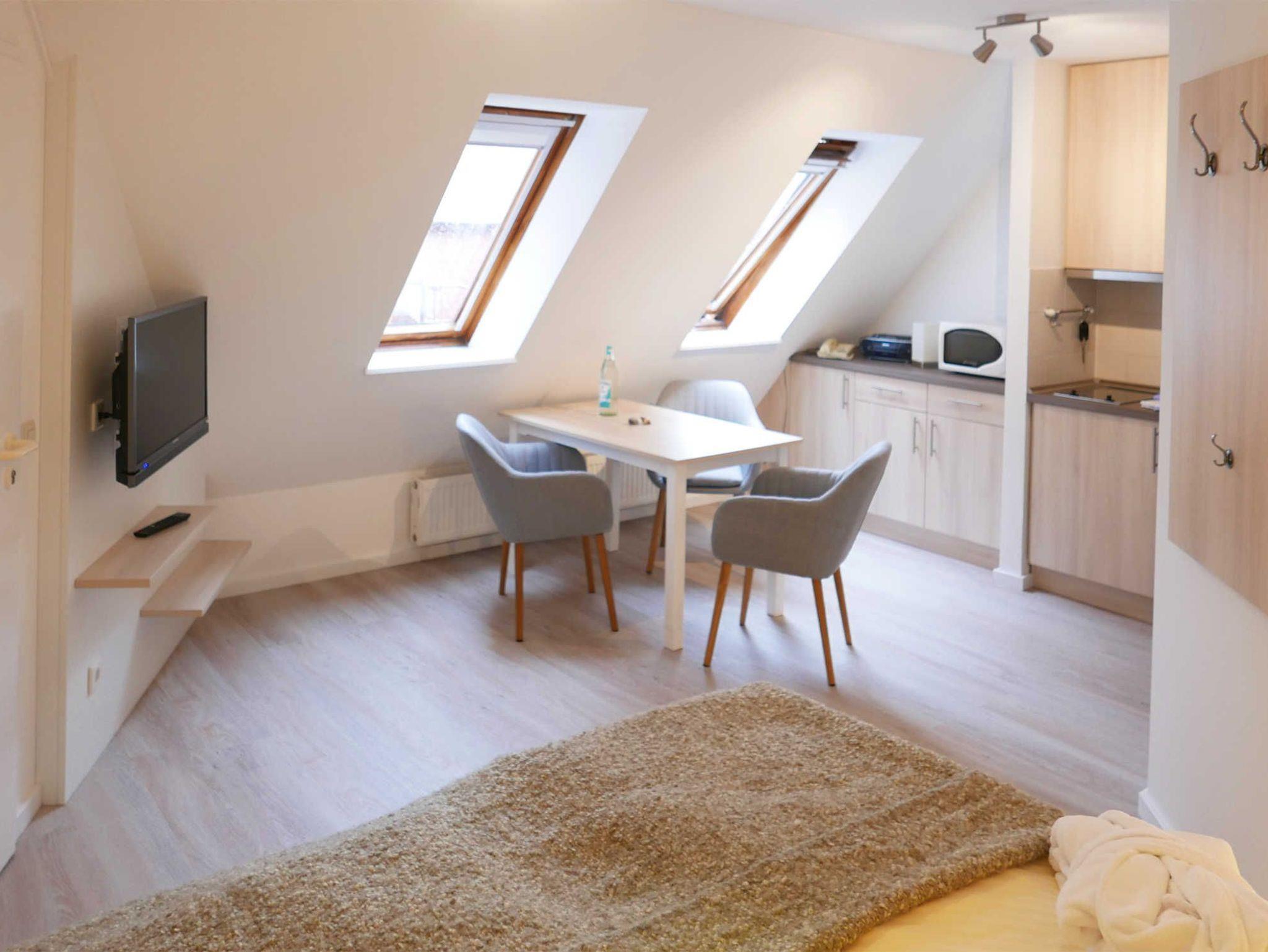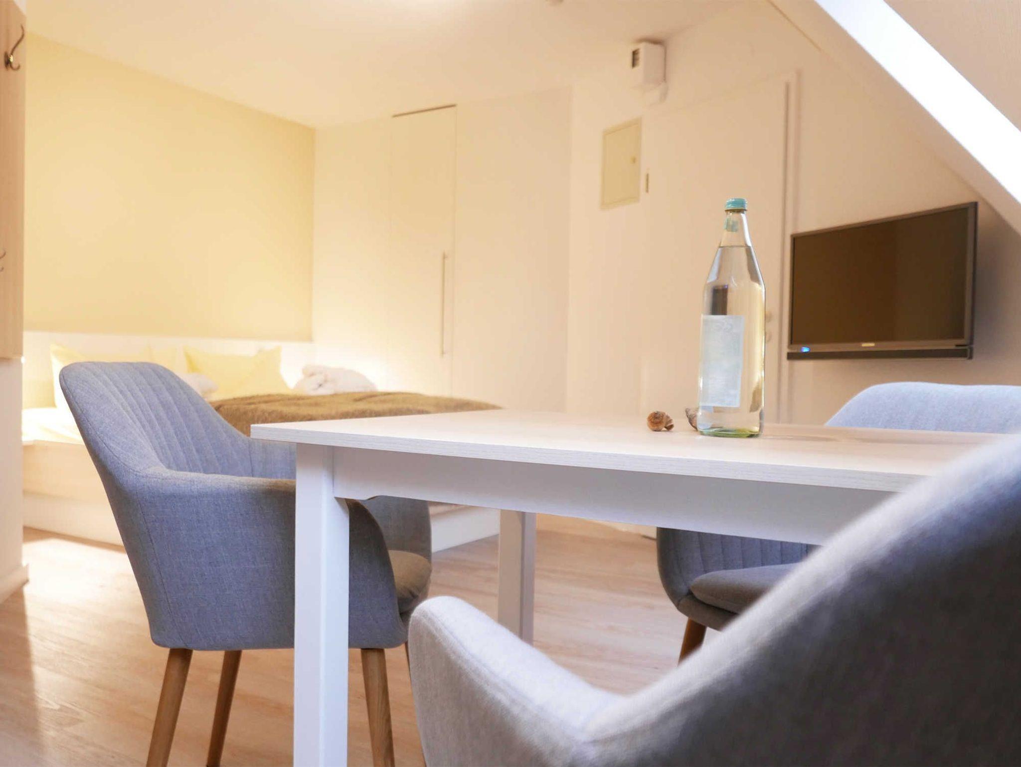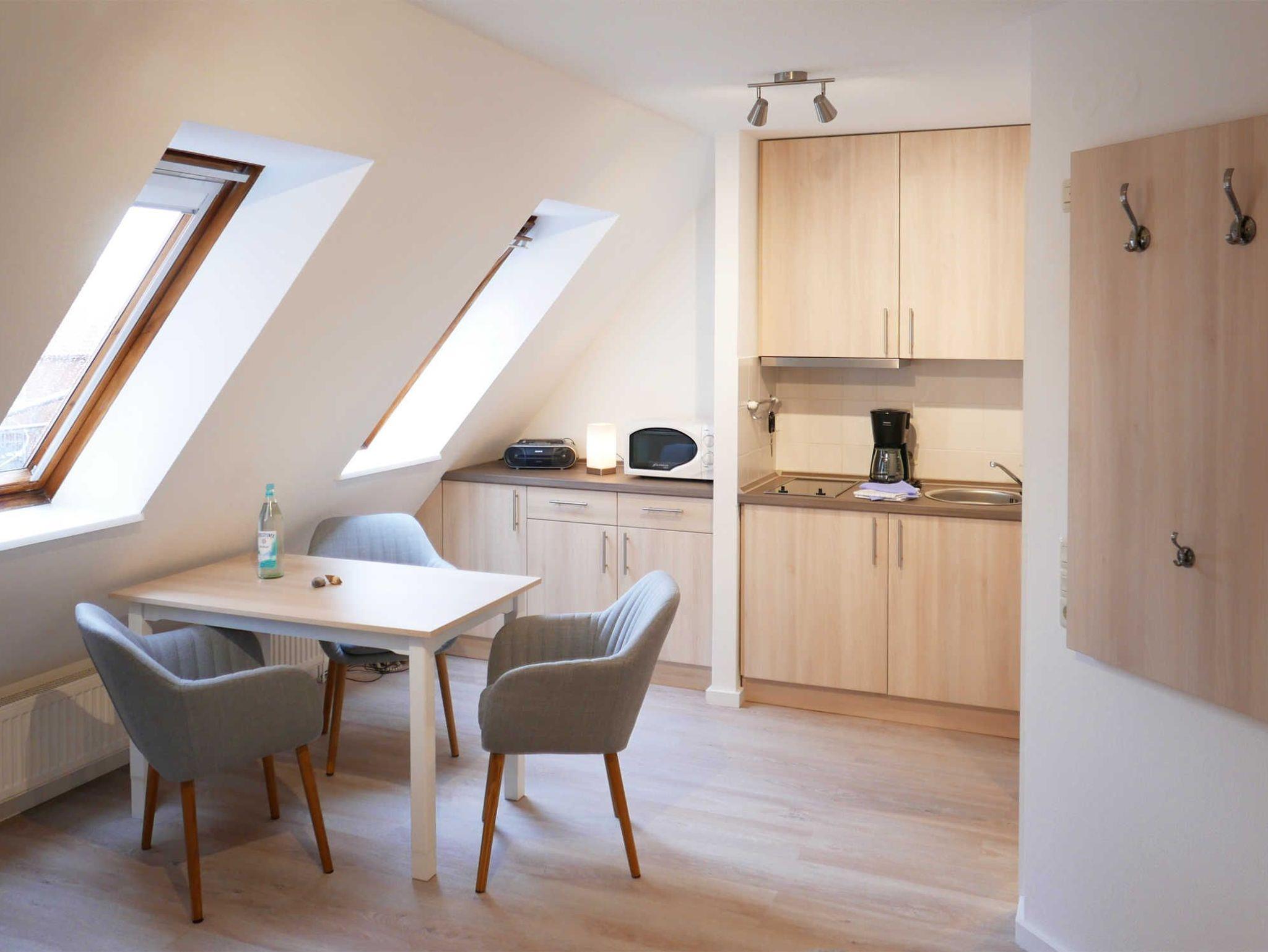 Studio für 2 Personen mit kleiner Küchenpantry in der Inselresidenz Strandburg mitten auf Juist, nur kurze Wege zum Strand und Hafen.