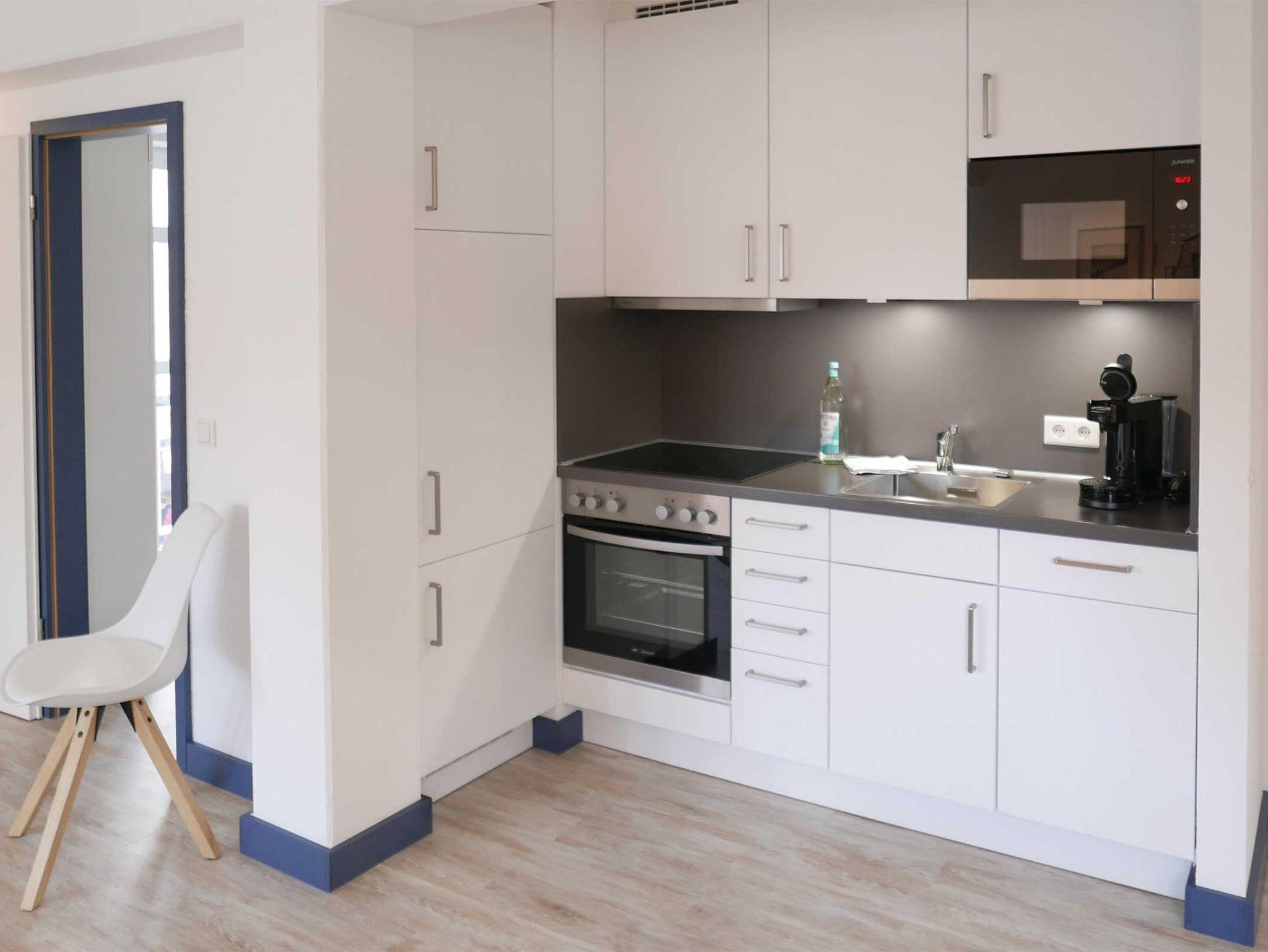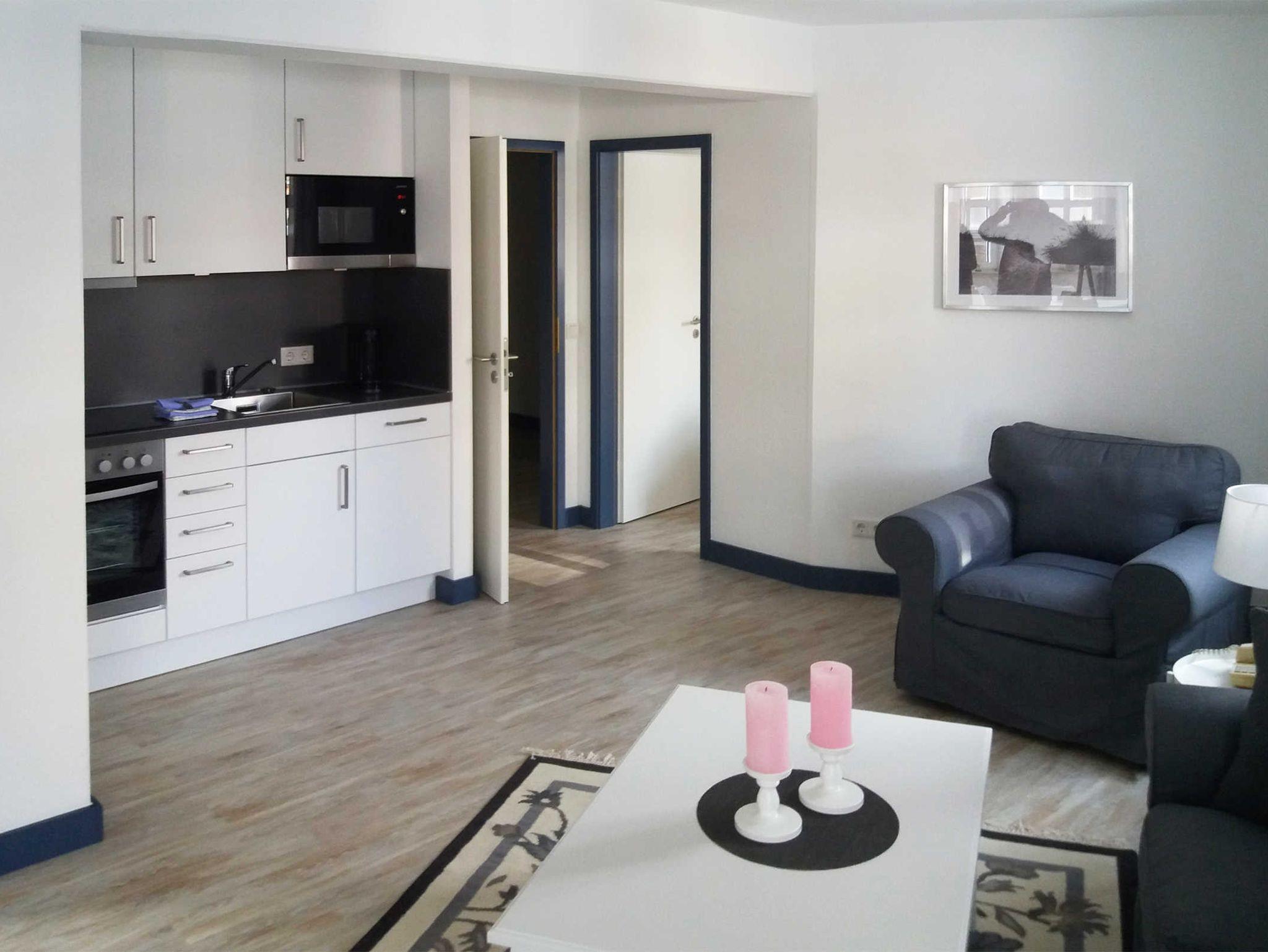 Komfortable Ferienwohnung mit großen Wohn/Essraum und integrierter Küche. 2 Schlafzimmer mit je einem Doppelbett von 160 x 200 m. Ein Trittbalkon vorhanden, Duschbad mit WC, WLAN vorhanden. Gut auch für Senioren geeignet, da die Wohnung per Aufzug zu erreichen ist.