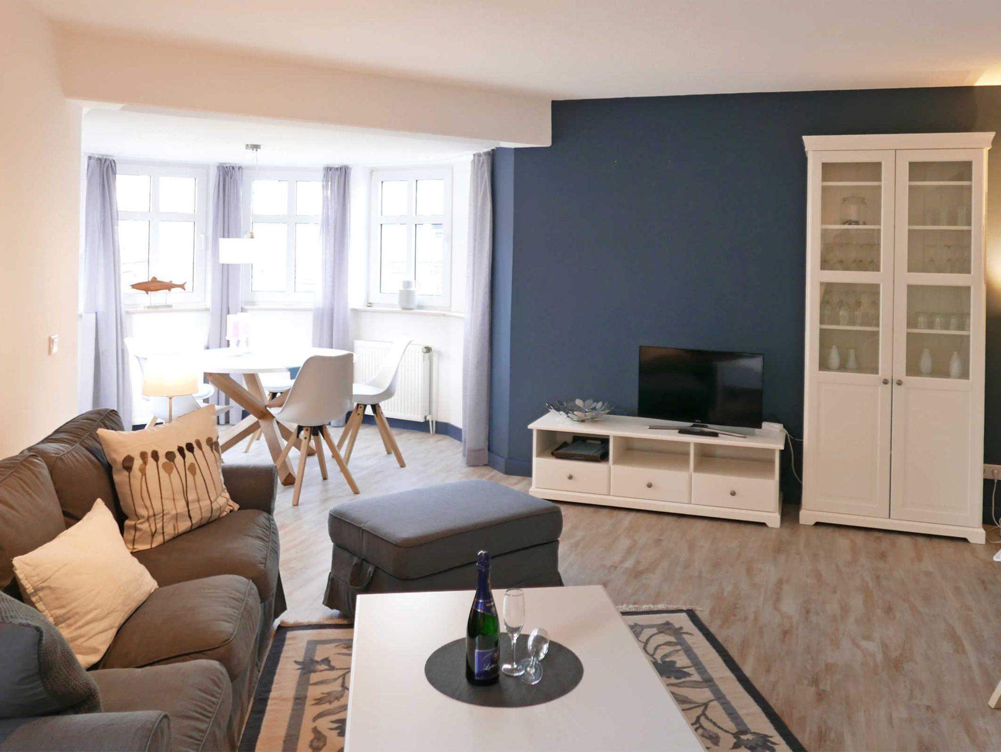 Sehr schöne großzügige Ferienwohnung mit großen Wohn/Essraum und integrierter Küche. 2 Schlafzimmer mit je einem Doppelbett von 160 x 200 m. Ein Trittbalkon vorhanden, Duschbad mit WC, WLAN vorhanden. Gut auch für Senioren geeignet. Genießen Sie das besondere Ambiente dieser Wohnung im Turm sowie das hauseigene neu renovierte Schwimmbad mit Sauna. Bademäntel für 2 Personen liegen für Sie bereit.