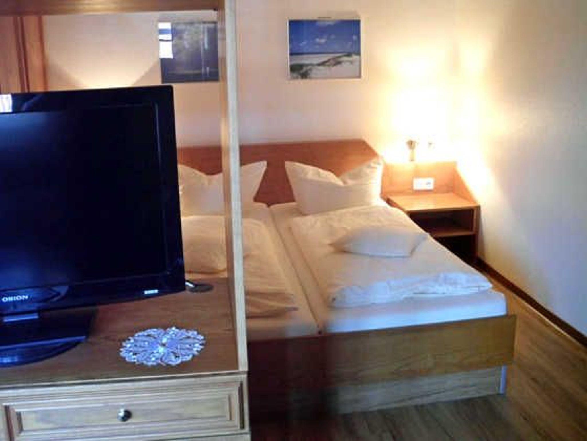 Die Ferienwohnung wurde teilweise neu möbliert, der Fußboden ist jetzt mit einem allergikerfreundlichen Belag vollständig ausgelegt. Der Schlafbereich, in dem das Doppelbett untergebracht ist, ist optisch vom Wohnbereich getrennt. Hierbei ist das Doppelbett (160x200 cm) durch einen Raumtrenner abgeteilt. Der Wohnbereich wird abergundet durch eine Medienecke, die mit Sat-TV, einem DVD-Player sowie einem Telefon ausgestattet ist.