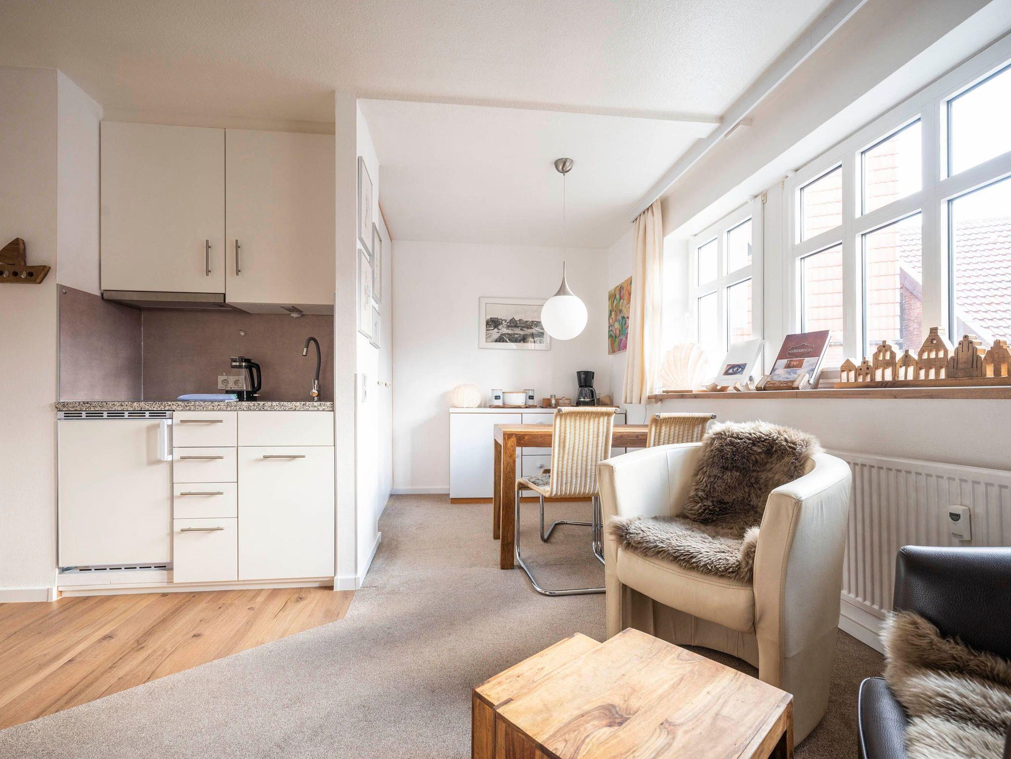 Gemütliches Nichtraucher-Apartment auf Juist mit Schwimmbad, Sauna und Restaurant direkt im Haus.