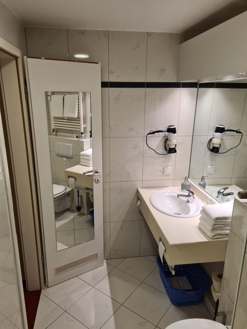 Das Badezimmer ist mit einer Dusche und Föhn ausgestattet, Bademäntel und Handtücher werden kostenfrei zur Verfügung gestellt.