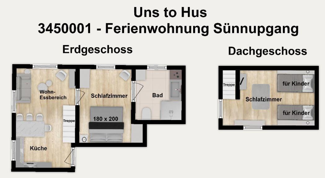 Herzlich willkommen im Haus "Uns to Hus" auf Juist! Unsere helle Ferienwohnung "Sünnupgang" bietet Ihnen mit einem Wohnraum, einem separaten Schlafzimmer und einem ausgebauten Dachboden mit zwei weiteren Schlafmöglichkeiten Platz für bis zu vier Personen. (Bitte max. zwei Erwachsene und 2 Kinder unter 18 Jahren).