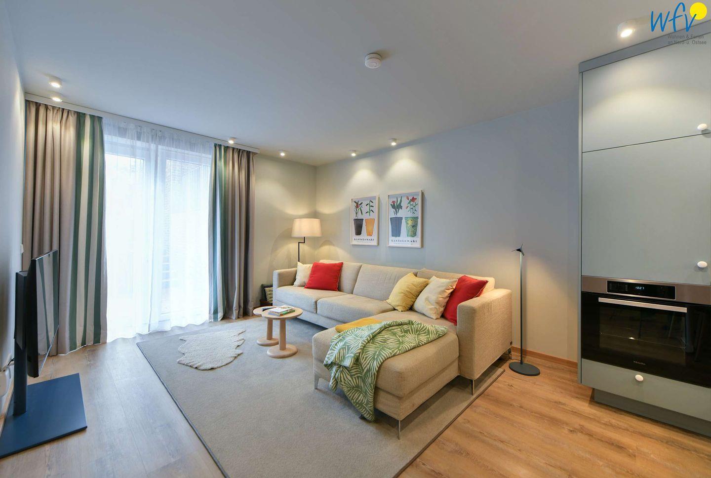 Die Ferienwohnung verfügt über ein separates Schlafzimmer, einen großzügigen Wohnraum mit integrierter Küche, ein Duschbad und eine große Terrasse und ist damit ideal für den Urlaub mit bis zu vier Personen. Helle Räume, eine sehr geschmackvolle Einrichtung in dezenten Farben und nordischem Stil sowie eine gute technische Ausstattung bieten Ihnen Wohnkomfort. Sie möchten gerne mit mehreren Personen verreisen? Diese Wohnung kann mit der weiteren Wohnung im UG (3460002 "Seestern" mit Sauna) mit einem eigenen Flurbereich zusammengelegt werden. Sprechen Sie uns gerne an!