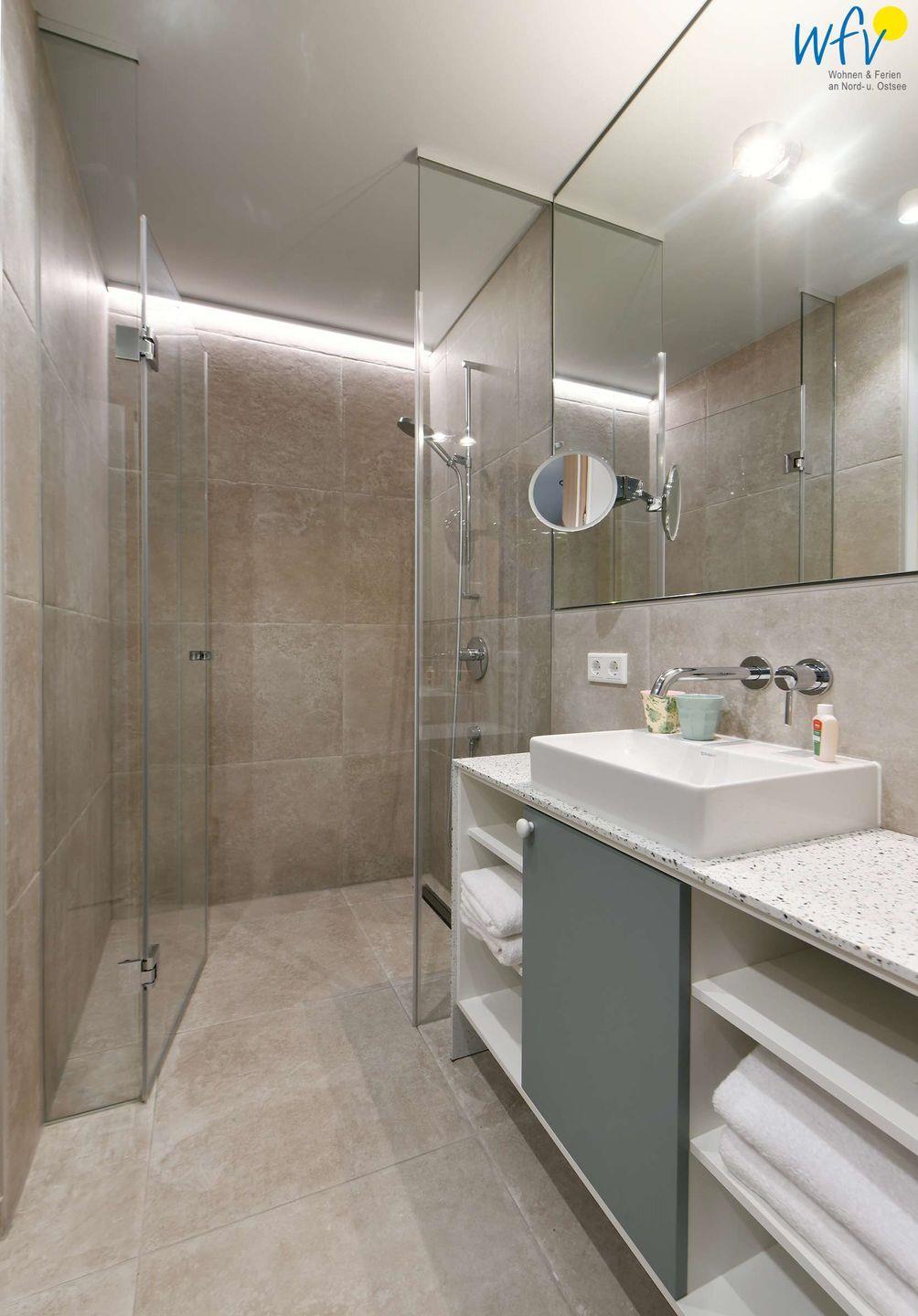 Weiteren Wohnkomfort bietet Ihnen das moderne Badezimmer mit stilvoller Ausstattung, Dusche und eigener Sauna. Ideal für Entspannungsmomente nach dem Strandspaziergang!