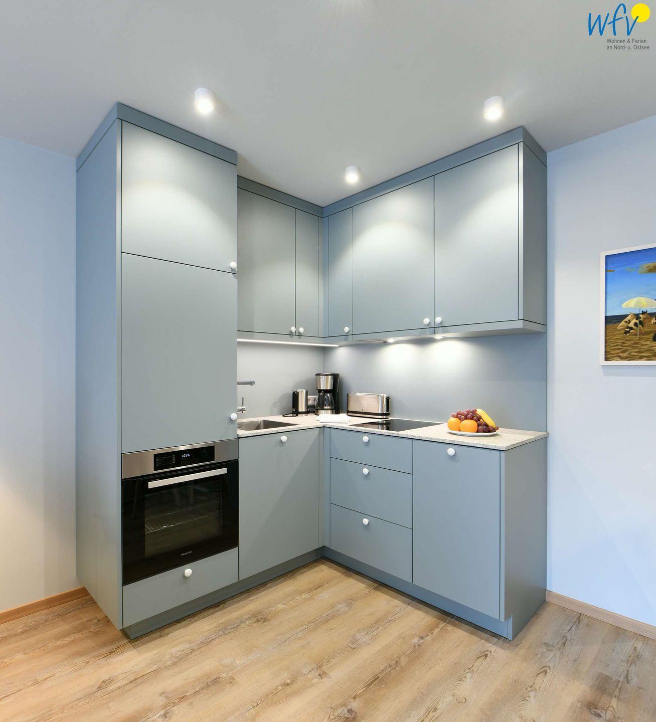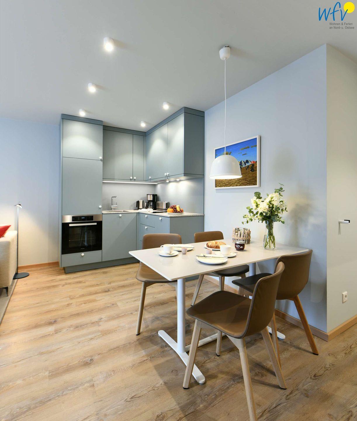 Für eine bequeme Selbstverpflegung verfügt die Ferienwohnung "Segel" über eine sehr gut bestückte Einbauküche – u.a. mit Herd, Backofen und Spülmaschine. Kaffeegourmets können zwischen der Filterkaffee-Maschine und einer NESPRESSO wählen.