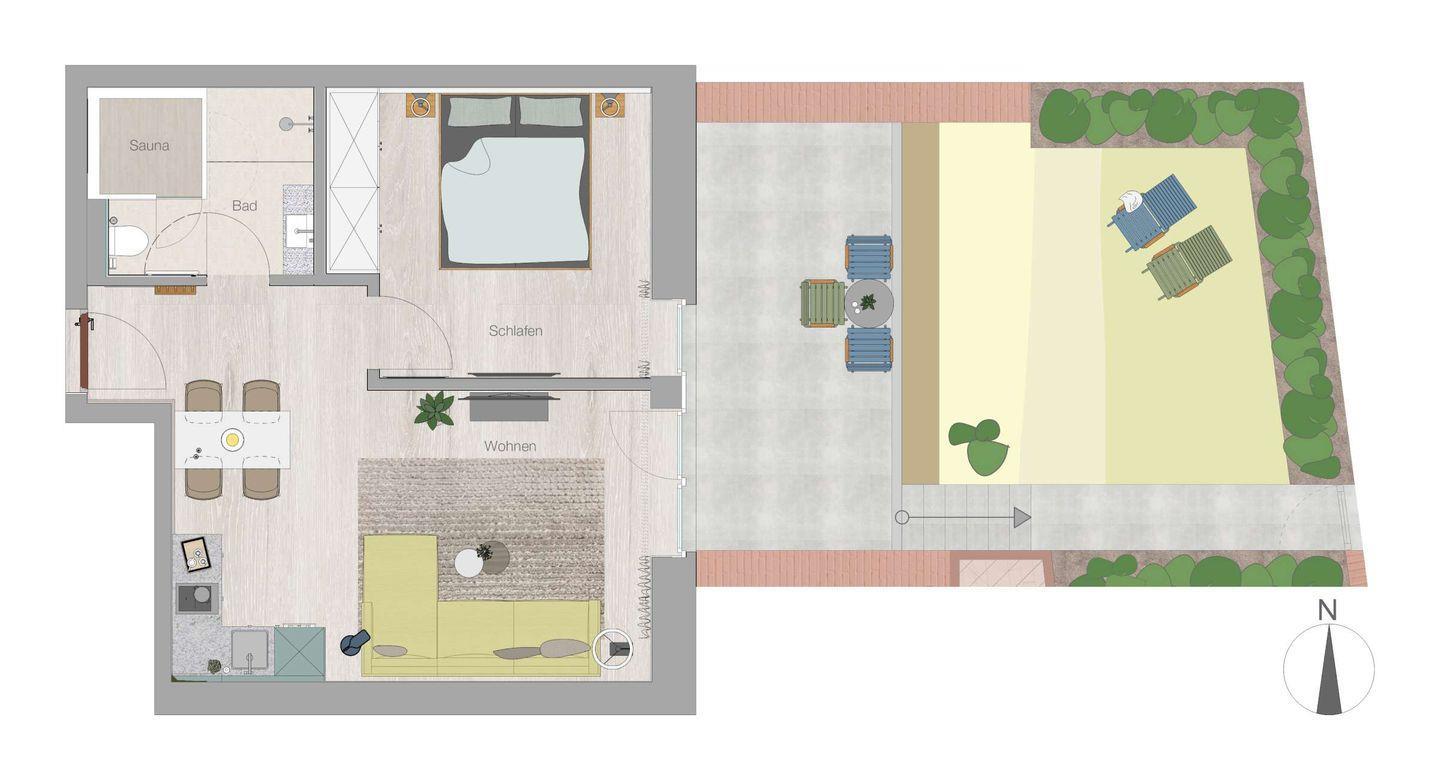 In unserer komfortablen Ferienwohnung "Segel" mit hochwertigem Mobiliar, sonniger Terrasse und Sauna erwarten Sie erholsame Ferien voller Entspannung.