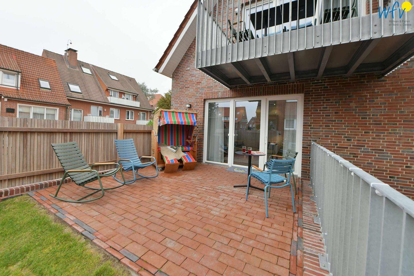 Genießen Sie modernen Komfort und Erholung in unserer stilvollen Ferienwohnung "Robbe" auf Juist mit großer Terrasse und hochwertiger Ausstattung.