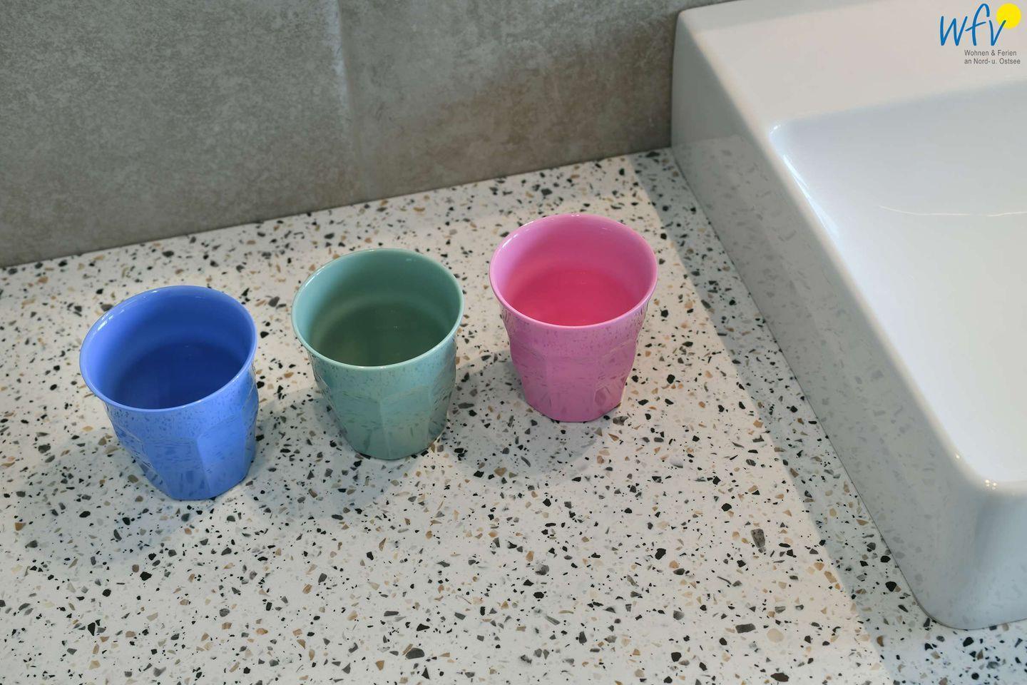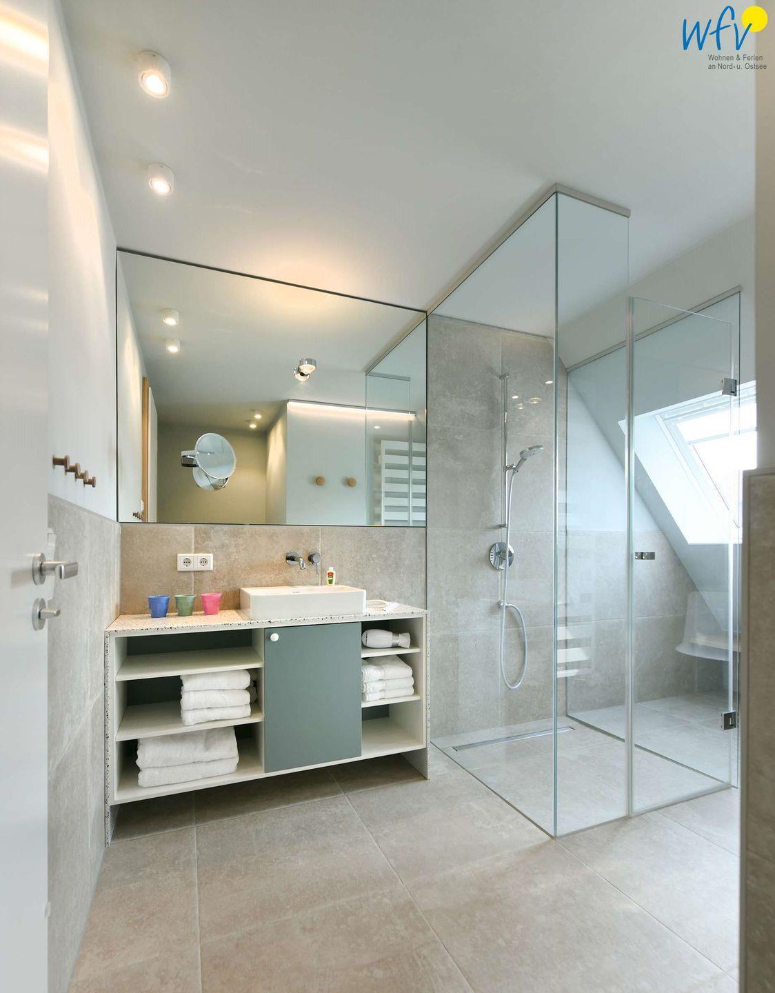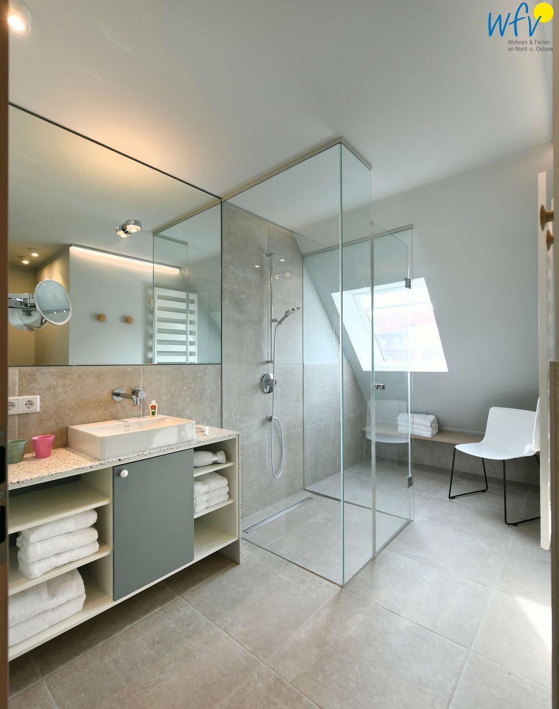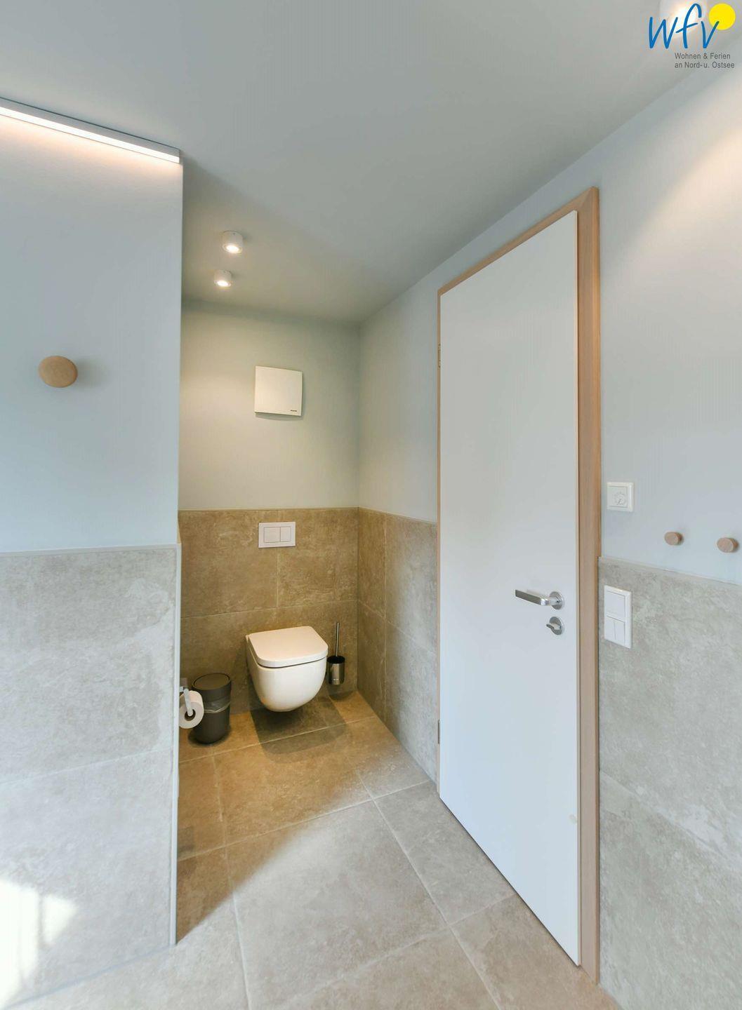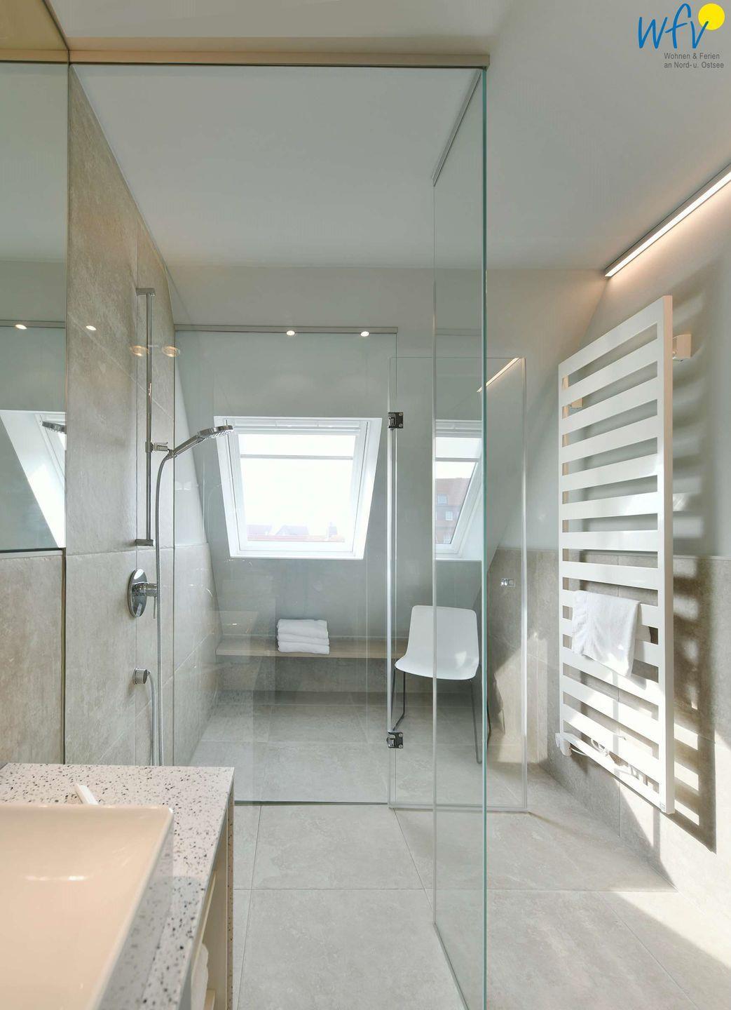 Ein gehobener Stil erwartet Sie auch in dem hochwertig ausgestatteten Badezimmer mit Dusche. Ideal für wohltuende Entspannungsmomente nach dem Strandspaziergang!