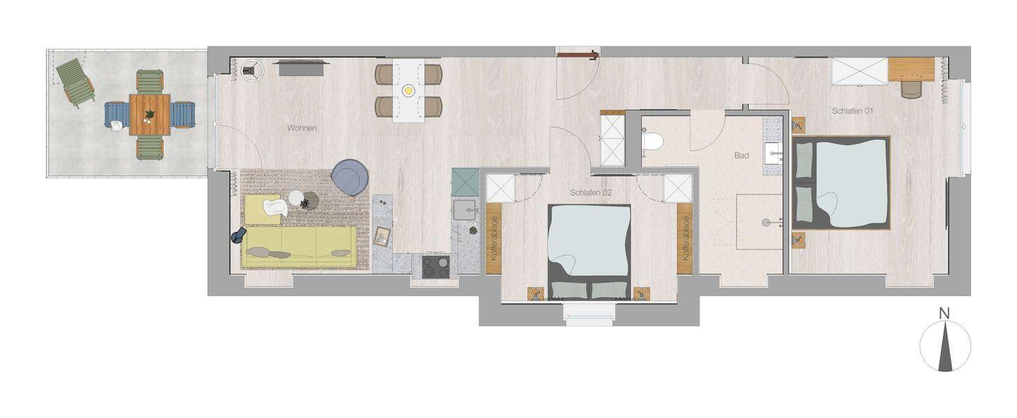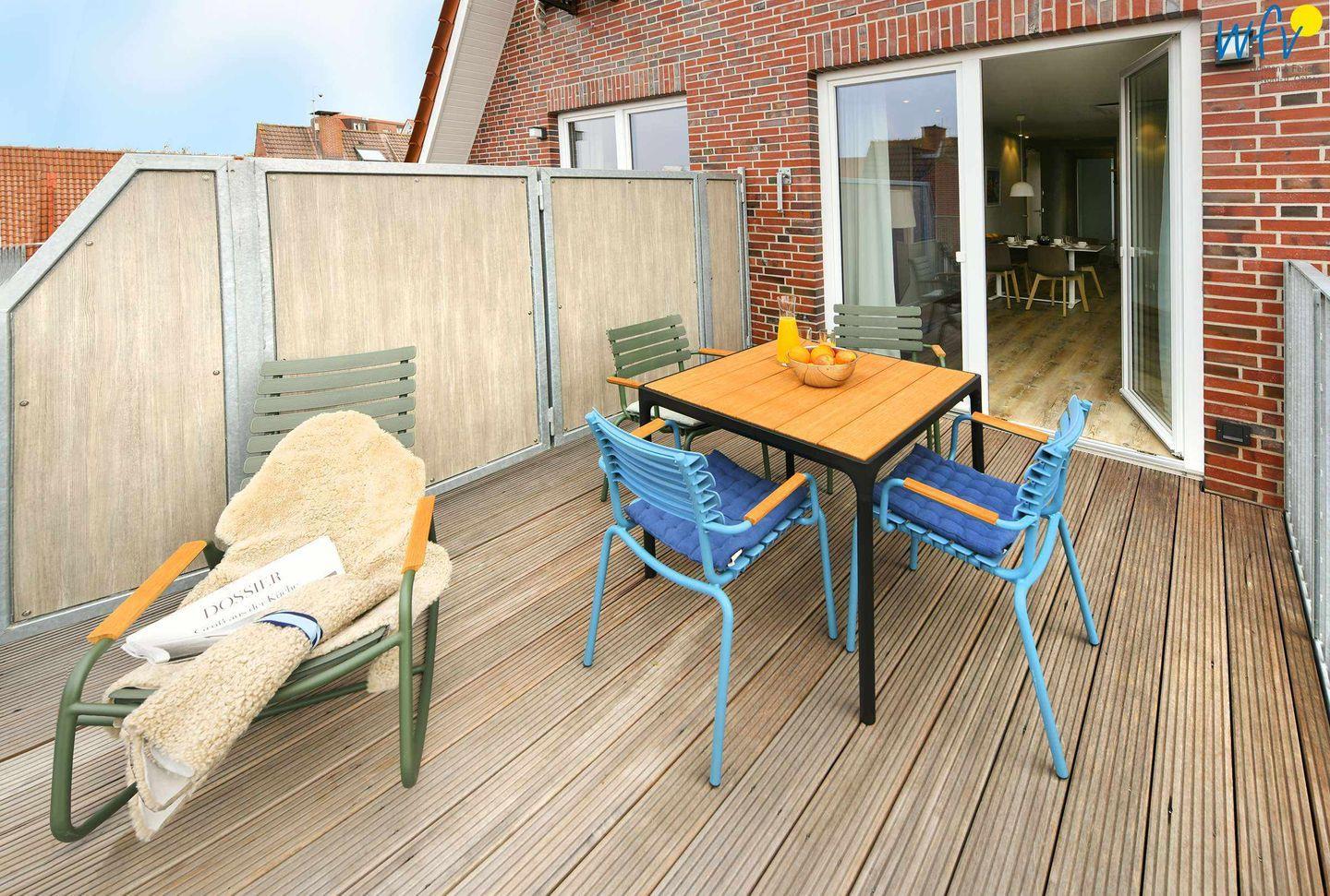 Komfortable Ferienwohnung mit sonniger Dachterrasse auf Juist für entspannten Familienurlaub.