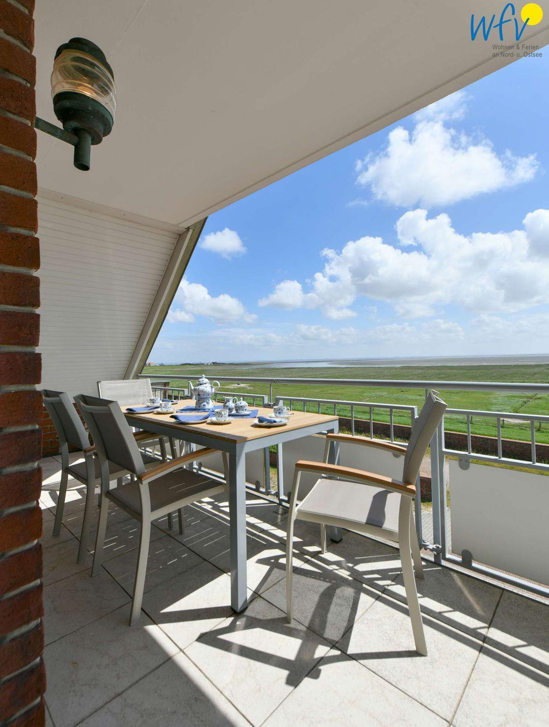 Wohltuende Nordseeluft buchen Sie in dieser Ferienwohnung auf Juist inklusive: Auf dem großen überdachten Balkon werden Sie mit einem bezaubernden Ausblick auf das Wattenmeer und die Salzwiesen verwöhnt. Hier in Ruhe ein gutes Buch zu lesen, die würzige Meeresluft zu schnuppern und einfach mal die Seele baumeln zu lassen, ist ein traumhaftes Urlaubsgefühl! Zu der Ferienwohnung gehört zusätzlich ein Gartenbereich, der von allen Gästen des Hauses genutzt werden kann.