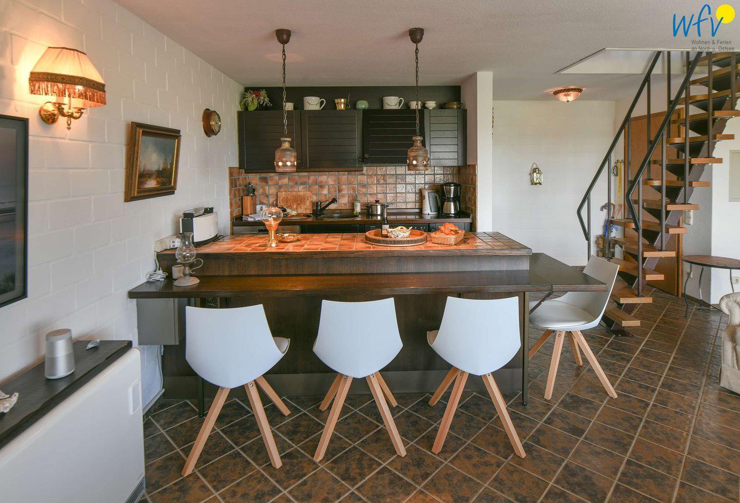 Für eine bequeme Selbstverpflegung verfügt die Ferienwohnung "Karin`s Nest" über eine gut ausgestattete Küche mit diversen Geräten - u.a. ein Ceranherd mit Backofen, ein Kühlschrank mit Gefrierfach und eine Spülmaschine.