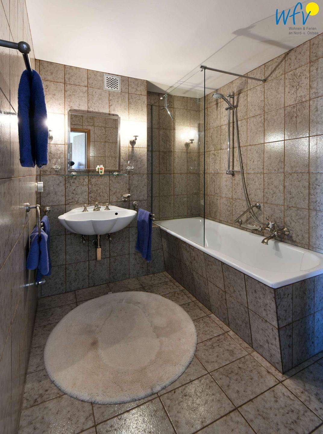 In der unteren Etage befindet sich ein Badezimmer mit Badewanne! Wunderbar, um sich nach dem ausgiebigen Strandspaziergang in einem warmen Schaumbad entspannen zu können!