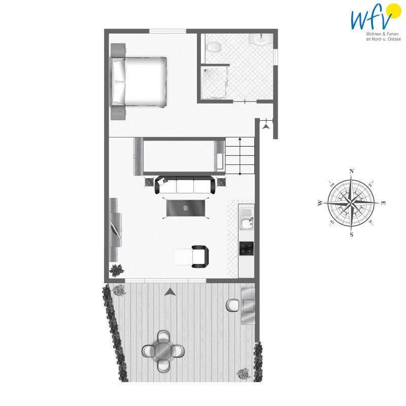 Sonne und frische Nordseeluft erwartet Sie auf der wohnungseigenen Süd-Terrasse. Hier mit einem spannenden Buch zu sitzen oder einfach nur die gute Luft zu genießen, ist ein wunderbares Urlaubsgefühl!