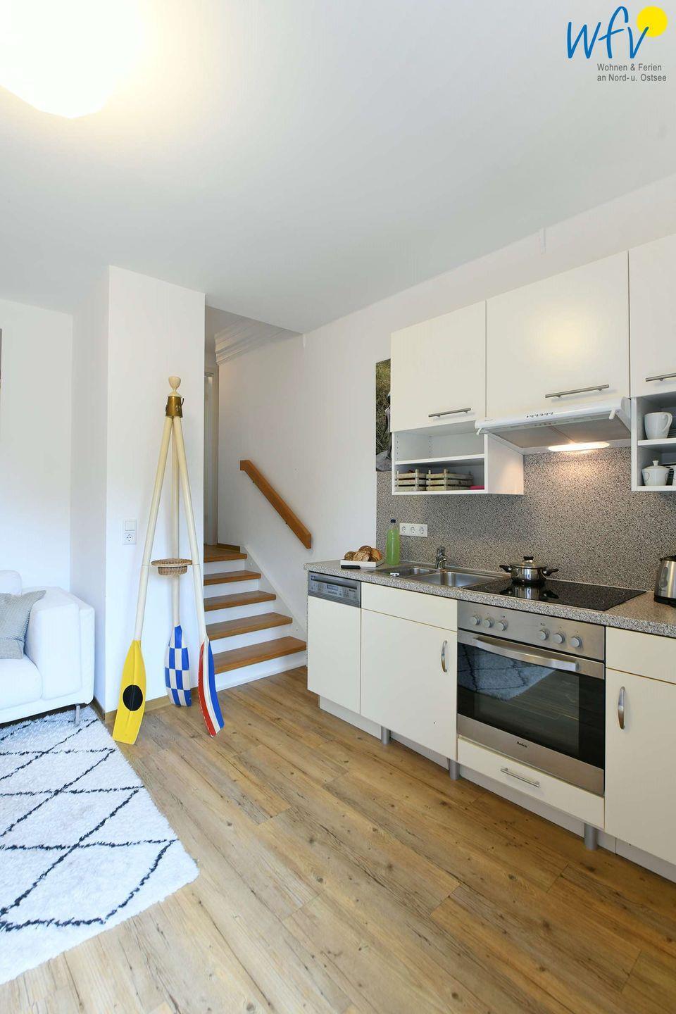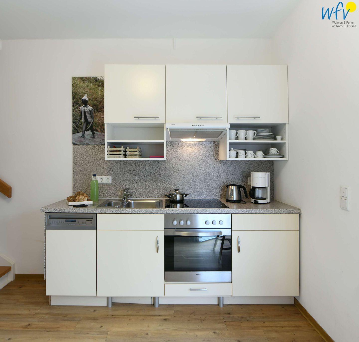 Für die praktische Selbstverpflegung ist im Wohnraum eine moderne Küchenzeile integriert - u.a. mit Herd, Backofen und Geschirrspüler sowie Kaffeemaschine, Wasserkocher, Toaster, Geschirr und Besteck (in Körben). Für den Fall, dass Sie sich in Ihrem Urlaub kulinarisch verwöhnen lassen möchten: Auf Juist finden Sie empfehlenswerte Restaurants, auf deren Terrassen mit Meerblick Sie in den Genuss köstlicher Spezialitäten der Nordseeküche kommen!