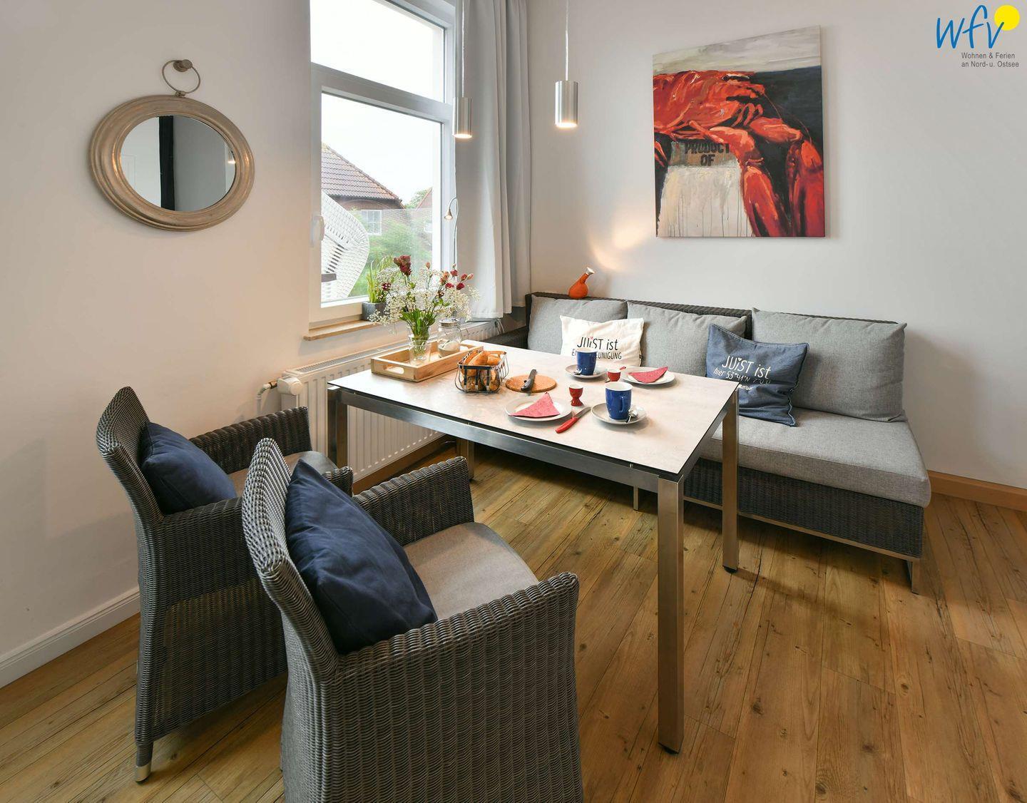Helle Räume, stilvolles Mobiliar und liebevolle Accessoires verleihen der Ferienwohnung eine sehr freundliche Atmosphäre.
