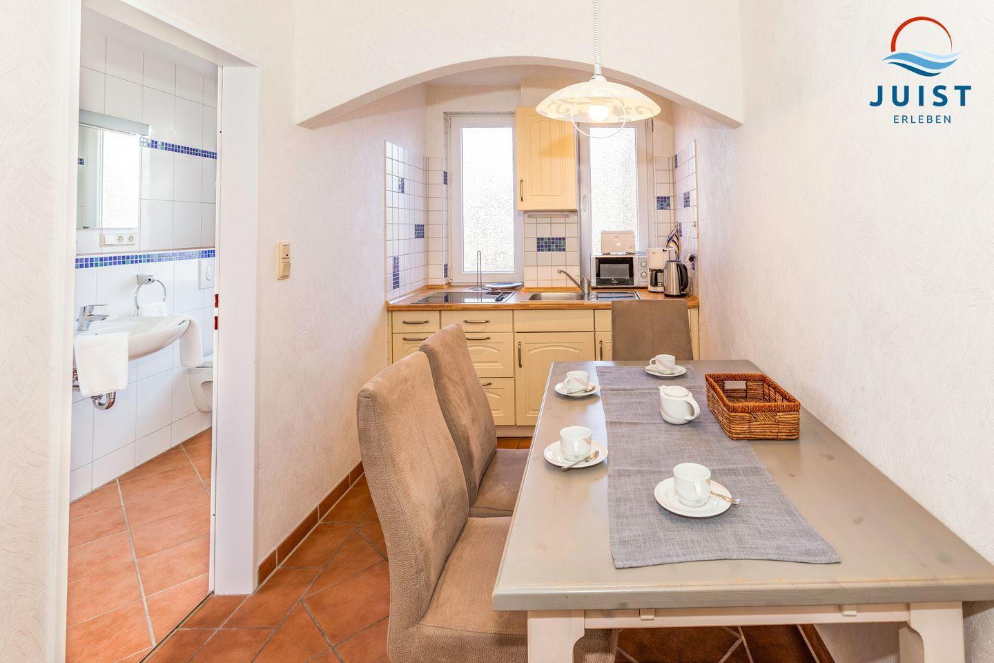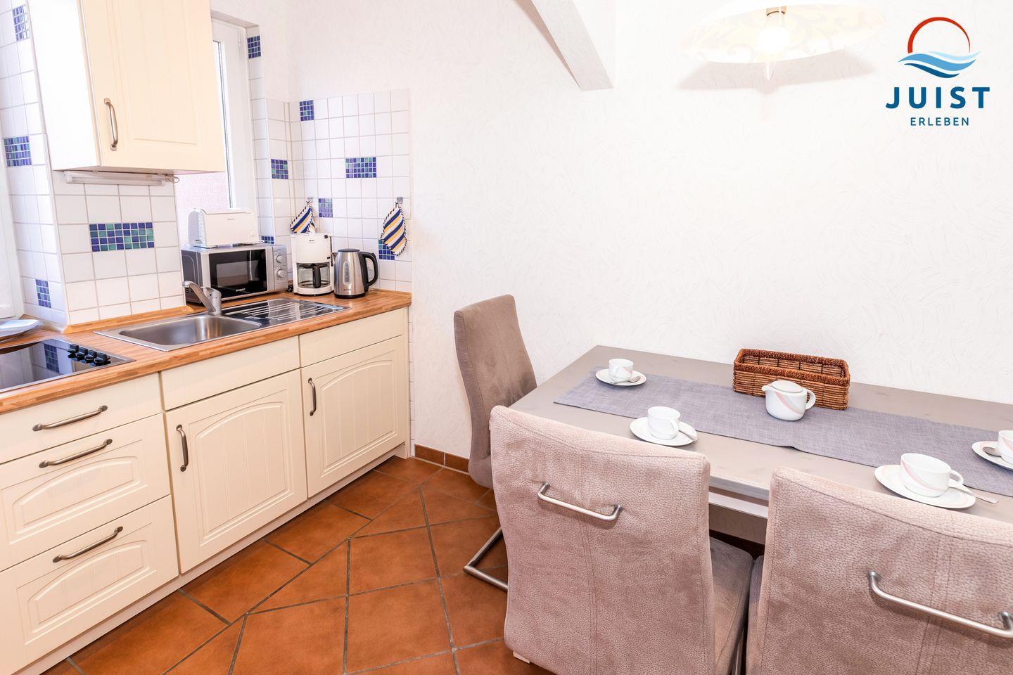 Gemütliche Ferienwohnung für Familien im ruhigen Ostdorf auf Juist mit moderner Küche und wohnlichem Ambiente.