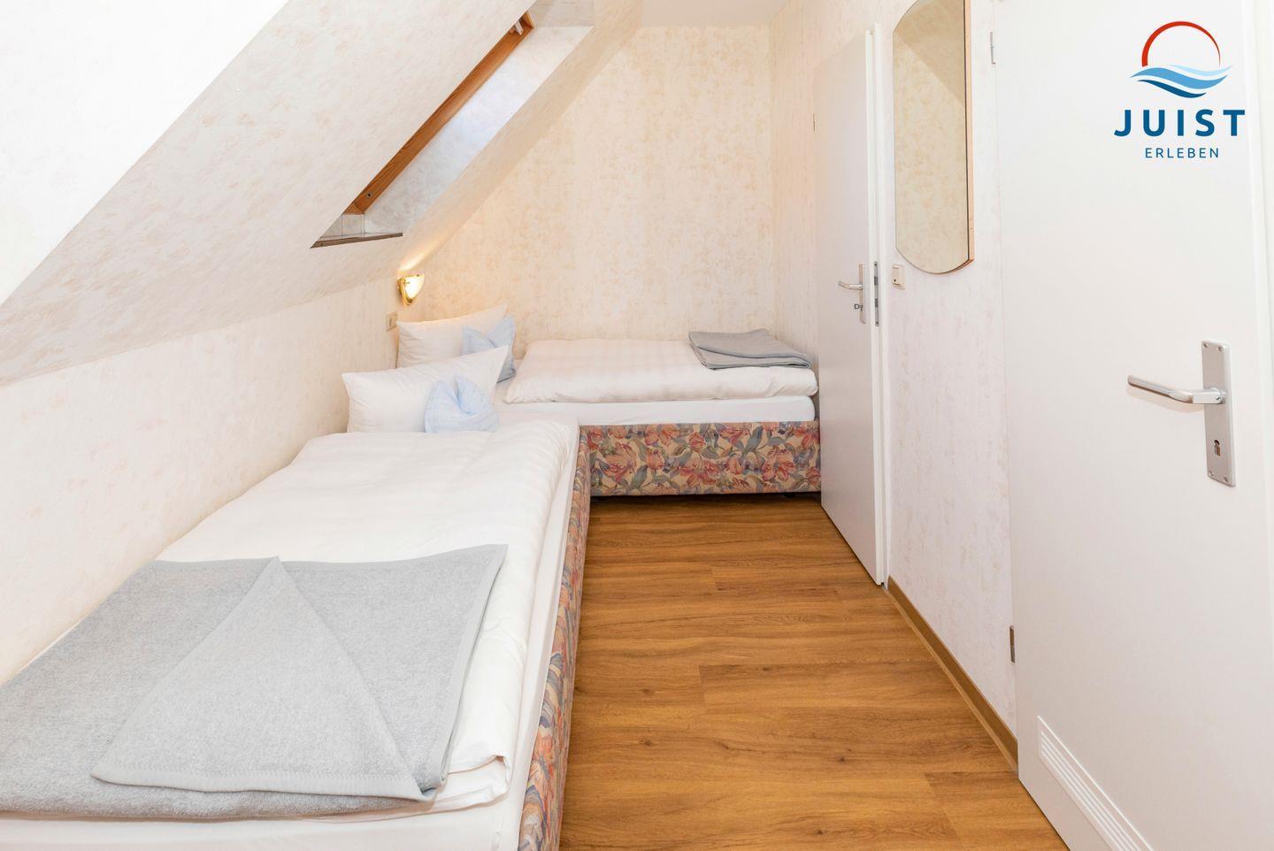 Das separate Schafzimmer der Ferienwohnung ist mit 2 Einzelbetten ausgestattet.