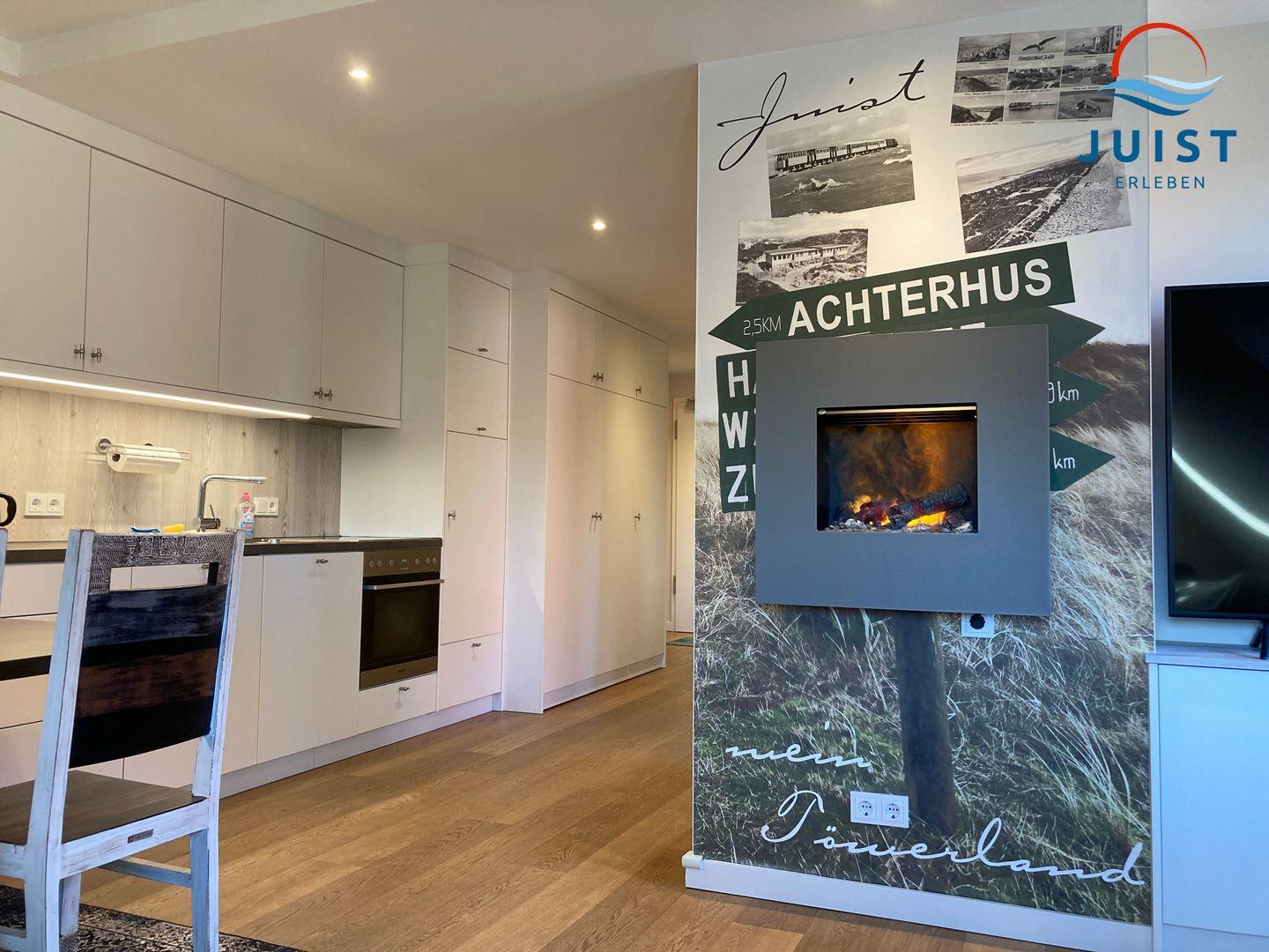 Modernes Mobiliar, luxuriöse Installationen in Küche und Bad sowie eine hochwertige technische Ausstattung mit einem modernen Flachbildfernseher bieten Ihnen einen Ort der Entspannung auf Juist.
