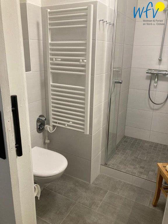 Das gepflegte und moderne Badezimmer mit Dusche und Handtuchheizung sorgt für weiteren Wohnkomfort.