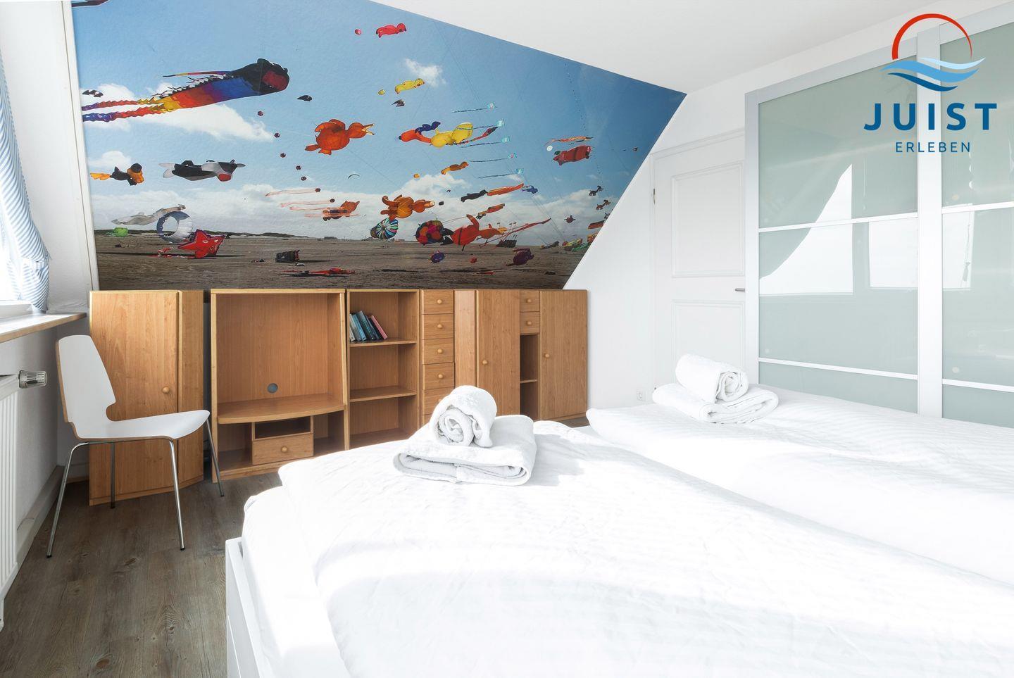 Beide Schlafzimmer sind mit einem Doppelbett sowie Kleiderschrank ausgestattet. Von einem Schlafzimmer aus haben sie einen traumhaften Blick auf den Hafen und das Wattenmeer.