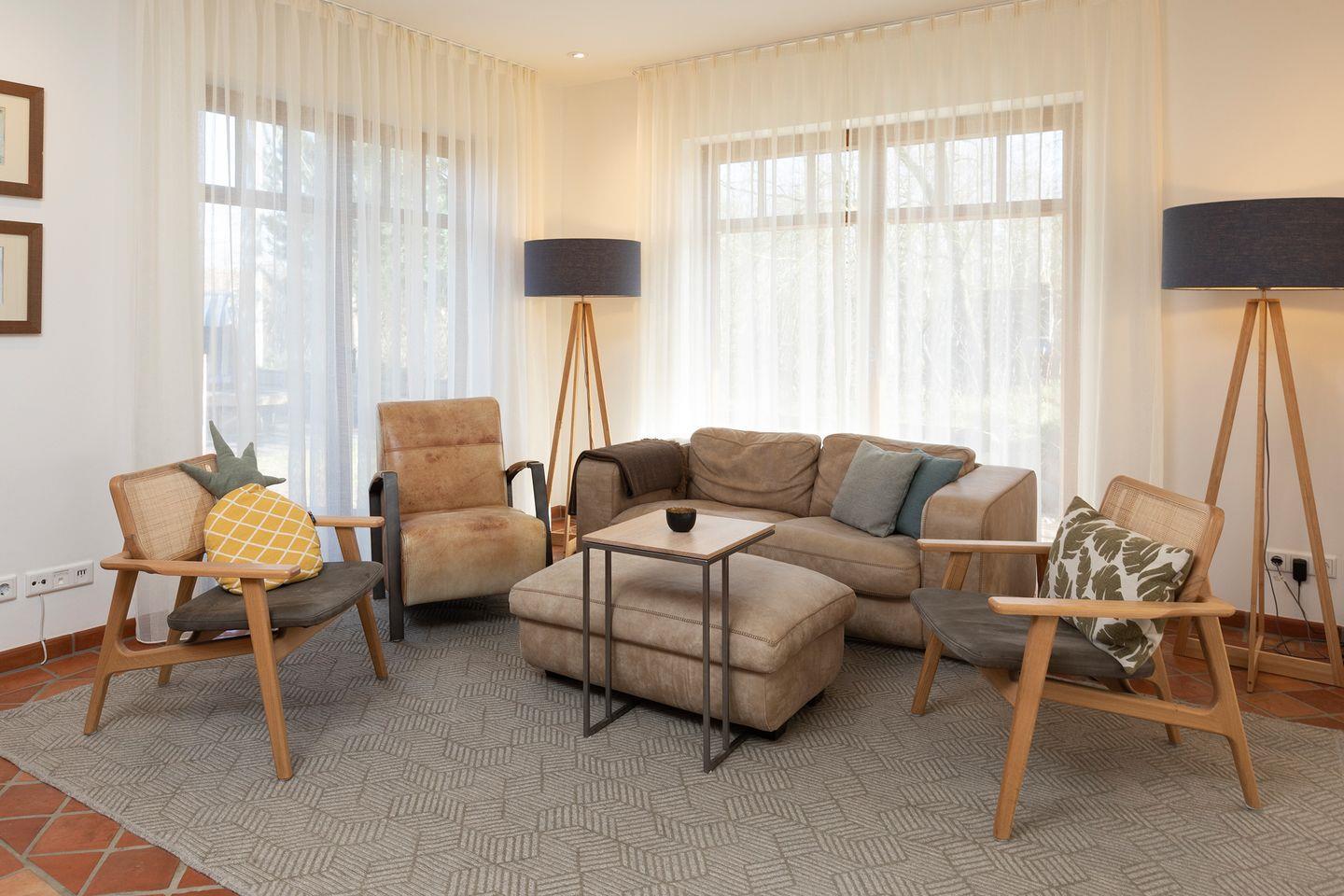 Wohnung „Strandhafer“ und die darüberliegende Wohnung „Dünenrose“ lassen sich auf der Erdgeschossebene verbinden und sind als gesamtes Ferienhaus für 8 Personen kombinierbar.